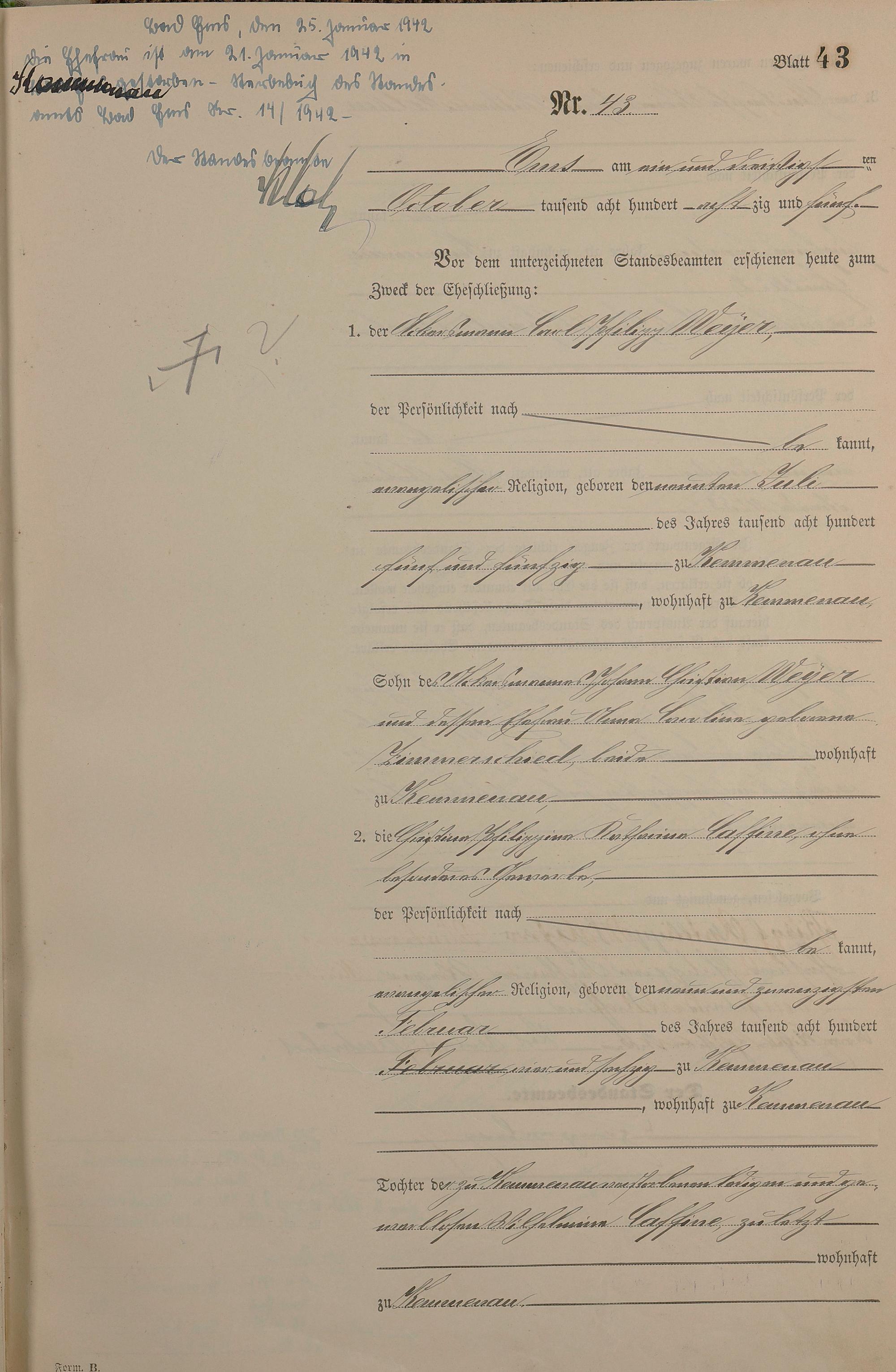 Heiratsregister 1885