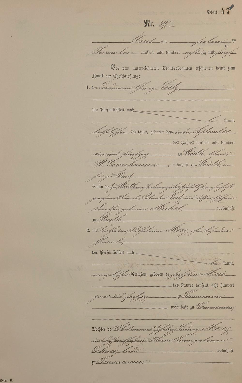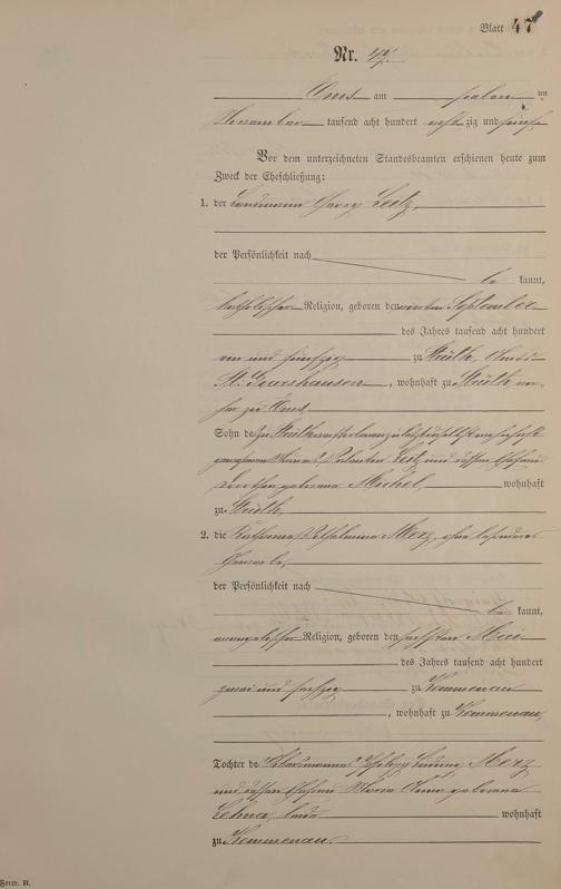 Heiratsregister 1885