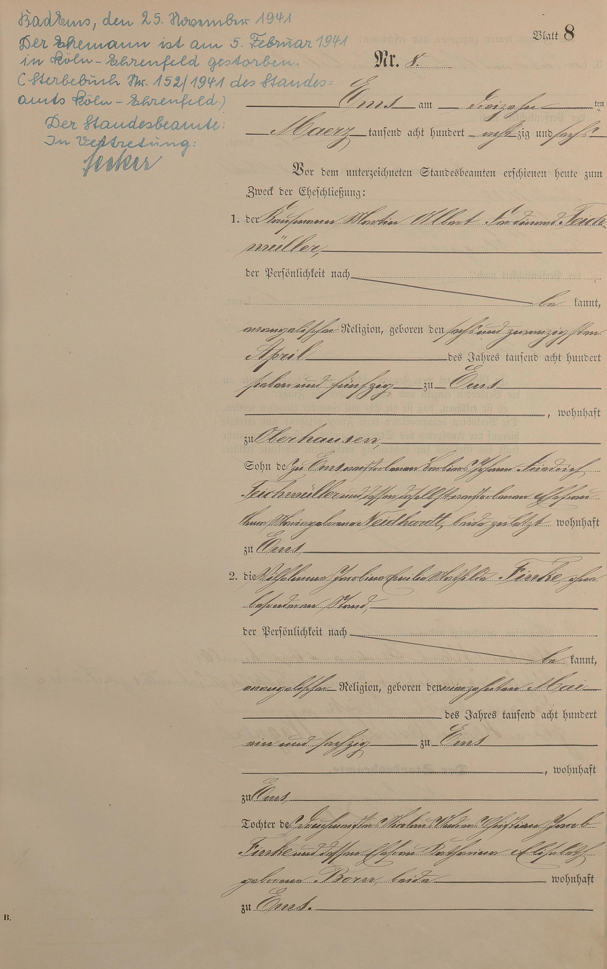 Heiratsregister 1886