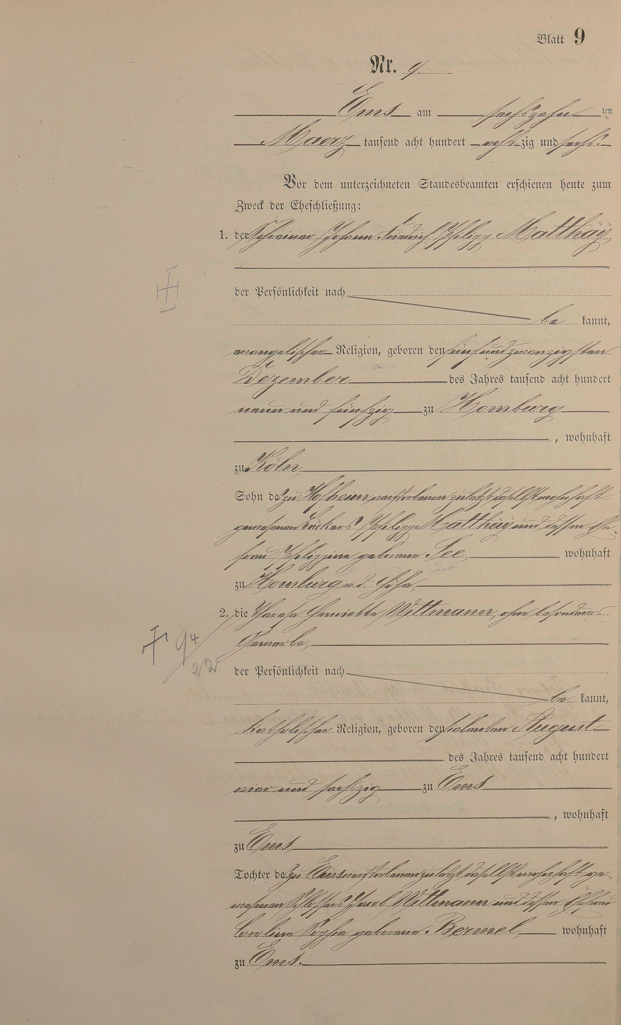Heiratsregister 1886