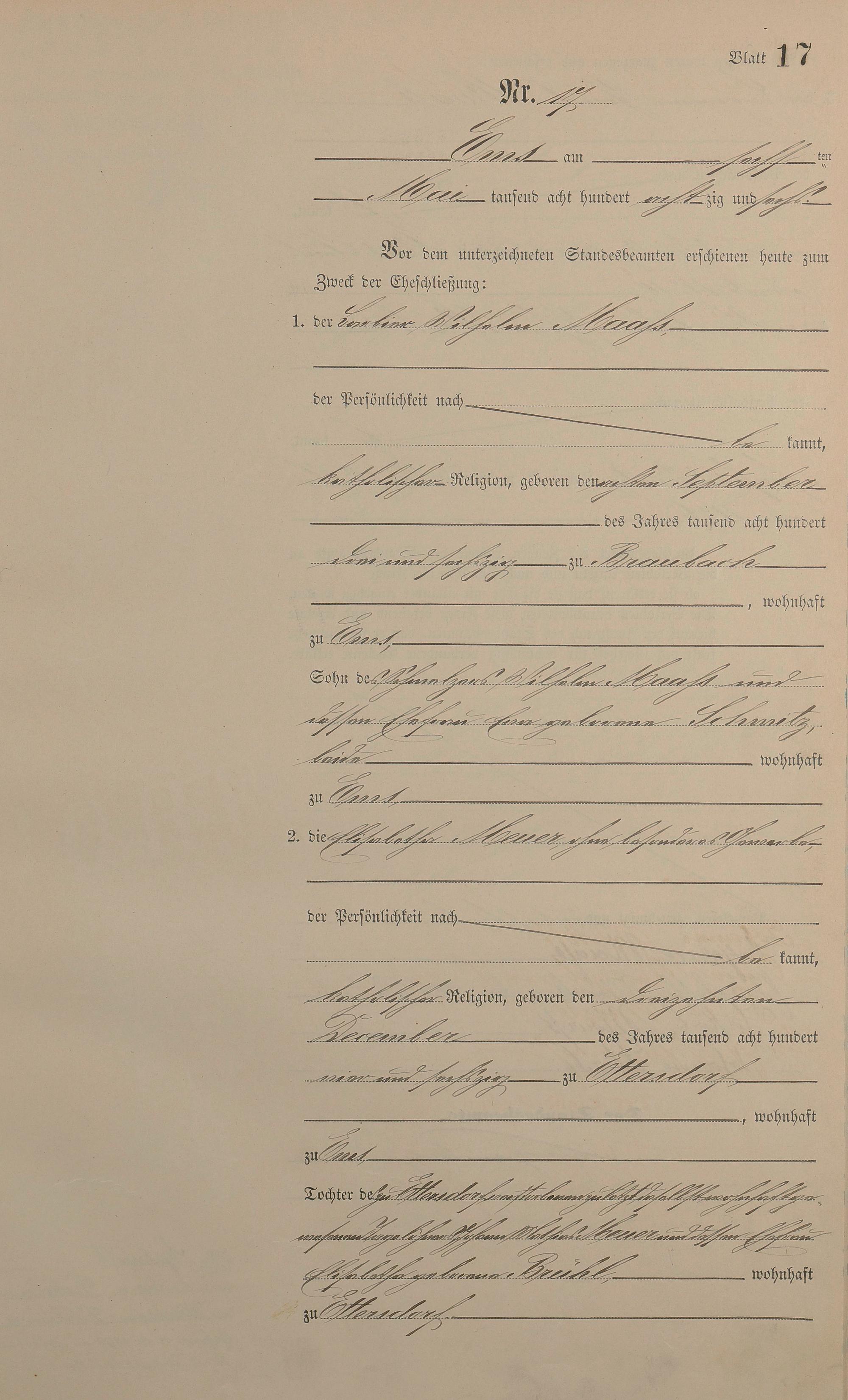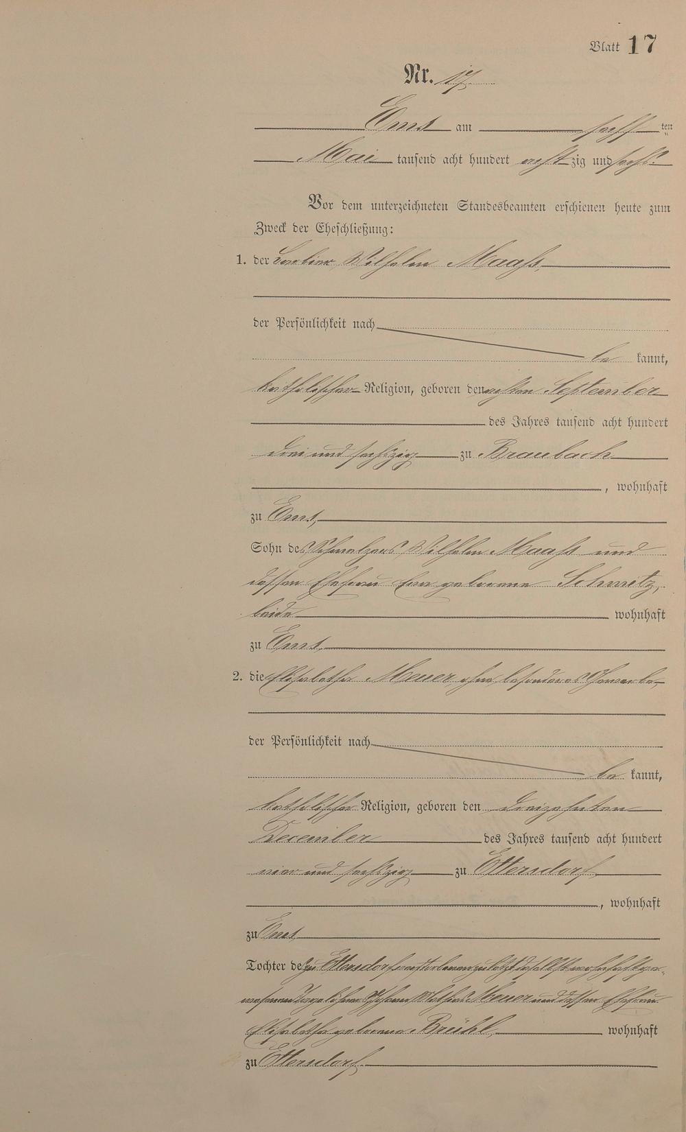 Heiratsregister 1886