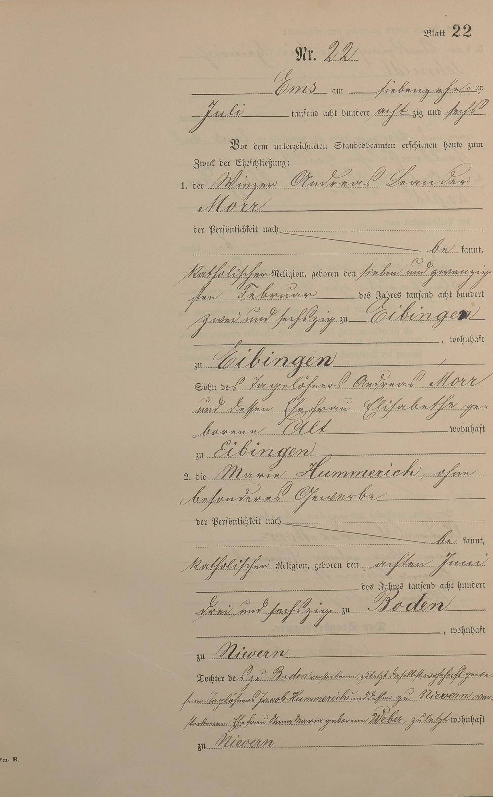 Heiratsregister 1886