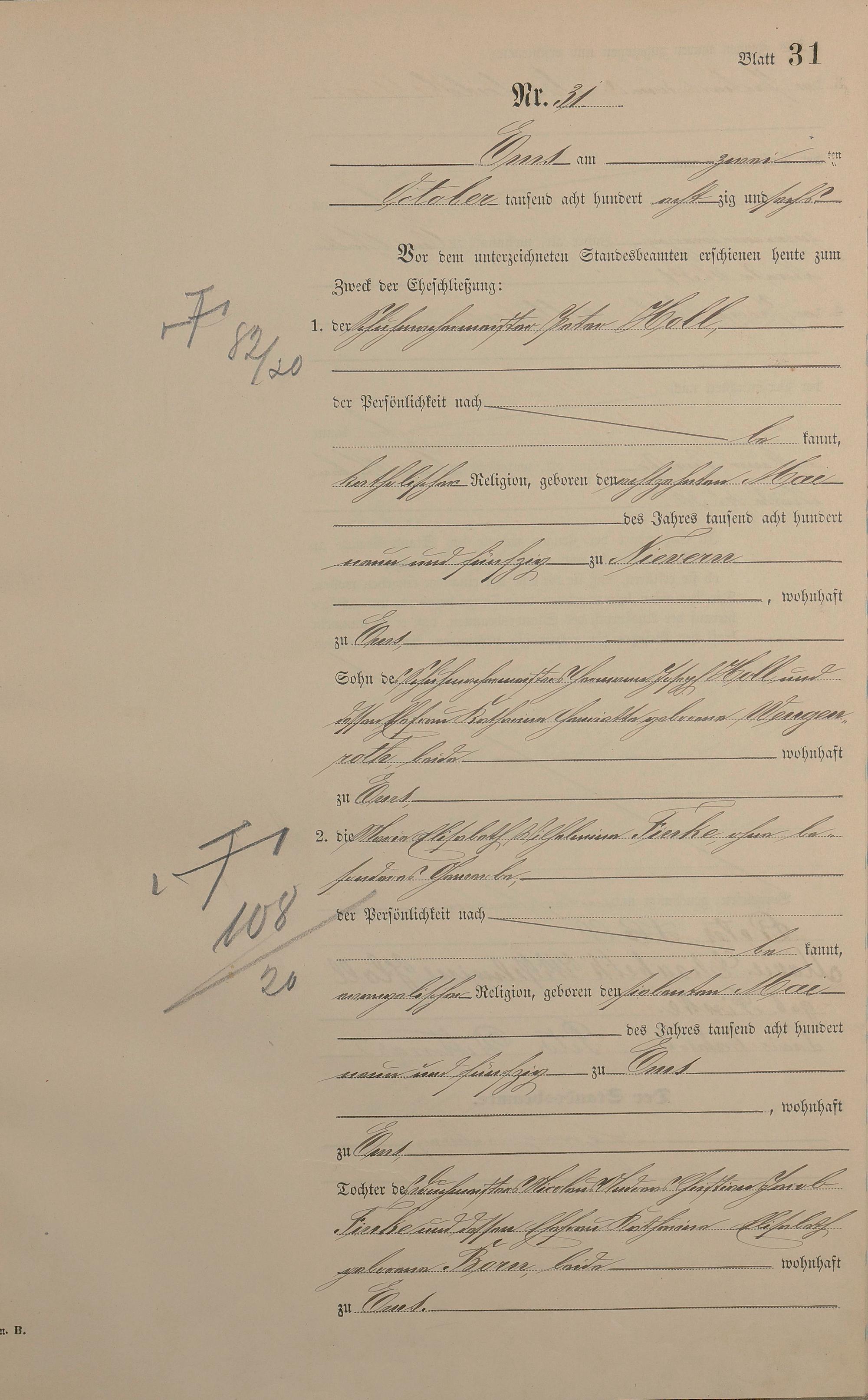 Heiratsregister 1886