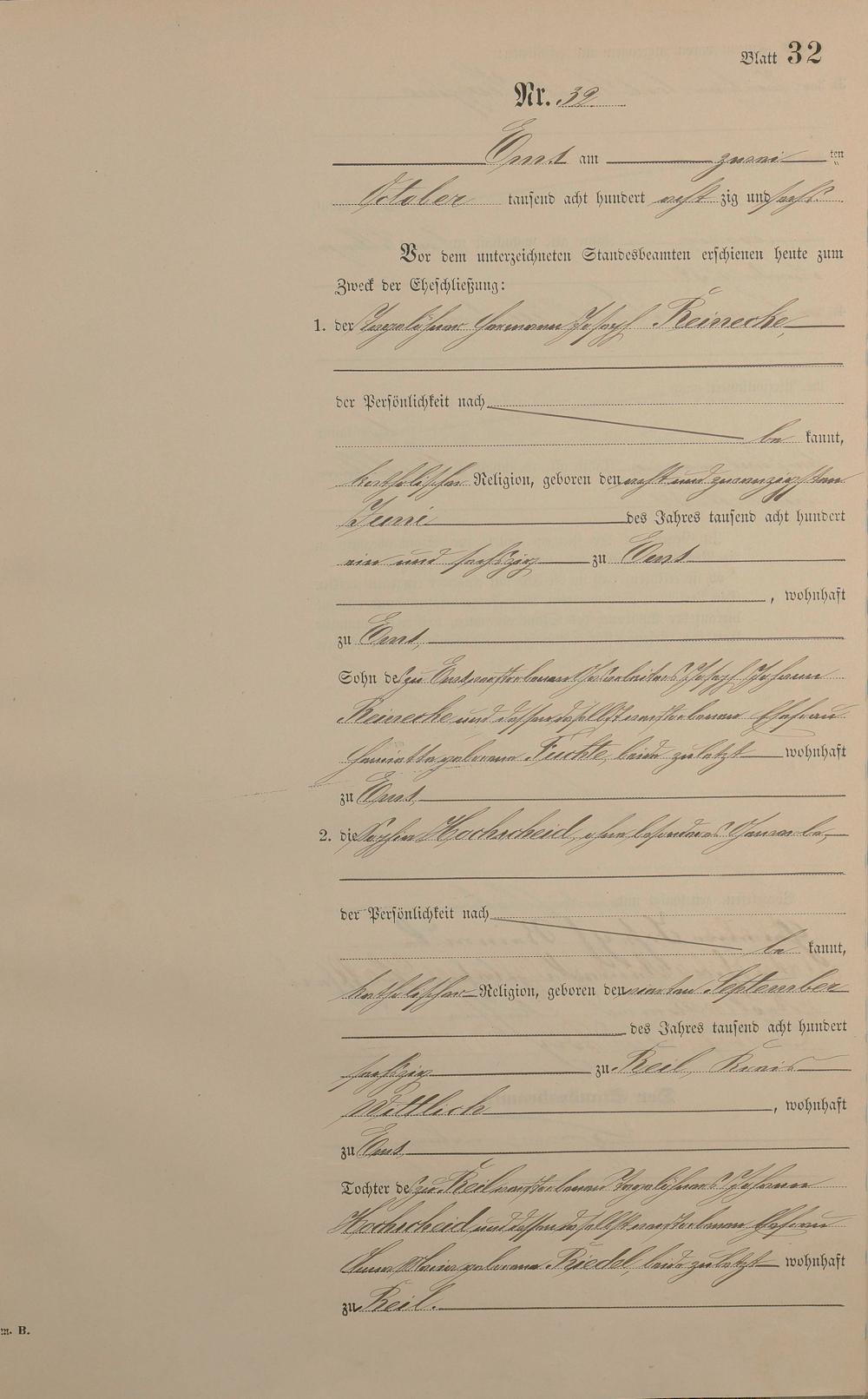 Heiratsregister 1886