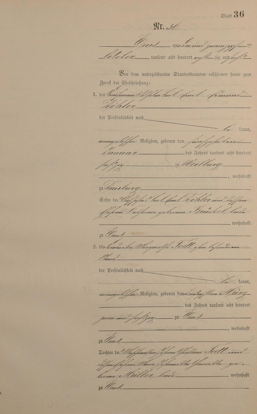 Heiratsregister 1886