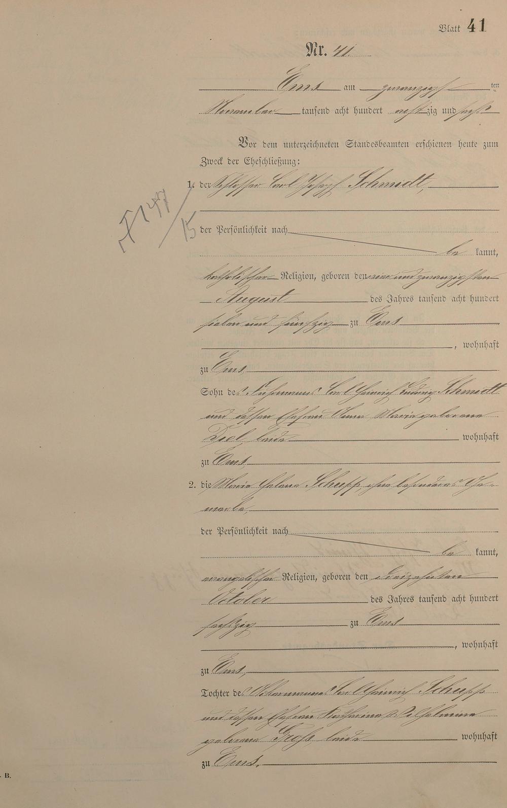 Heiratsregister 1886