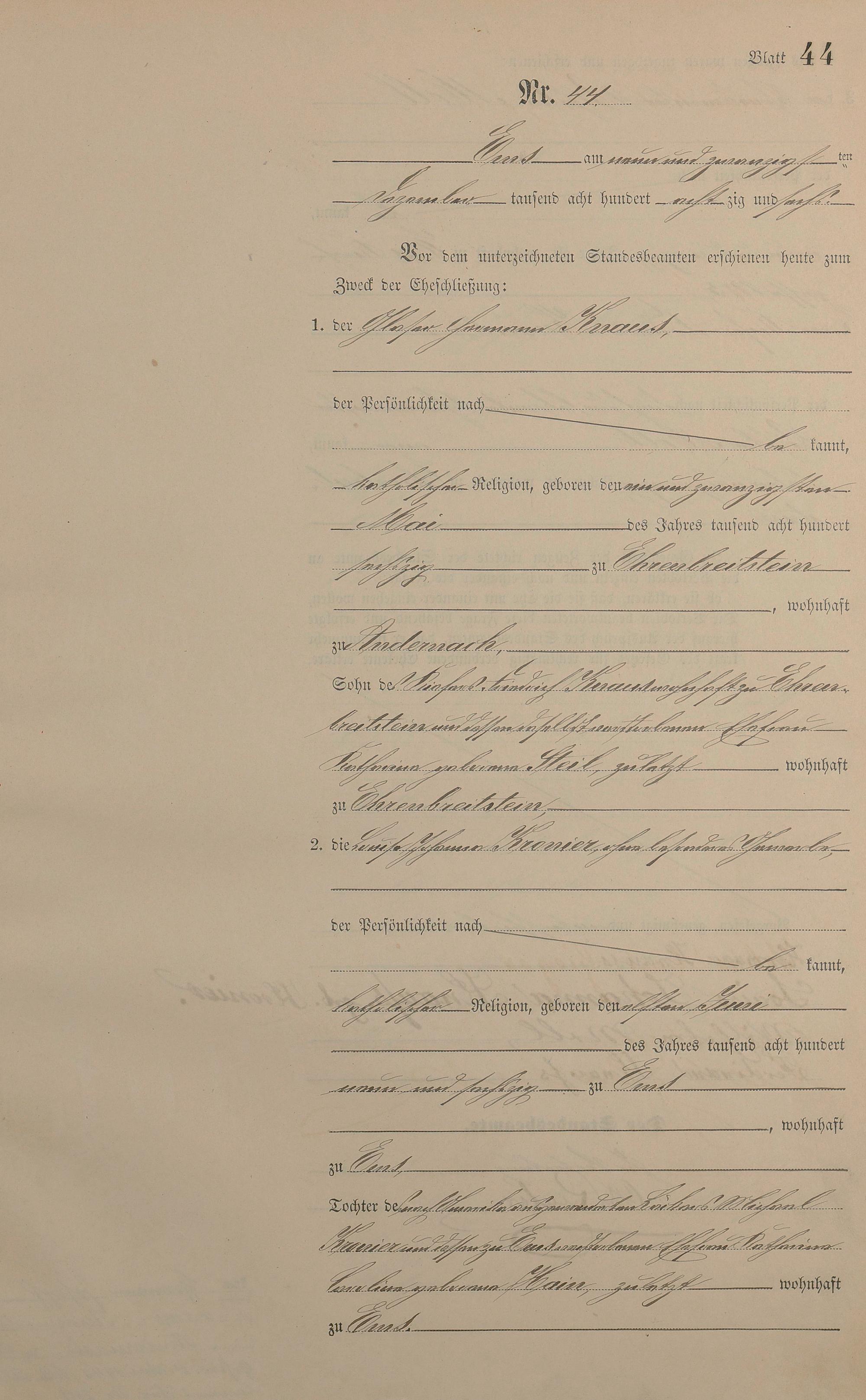 Heiratsregister 1886