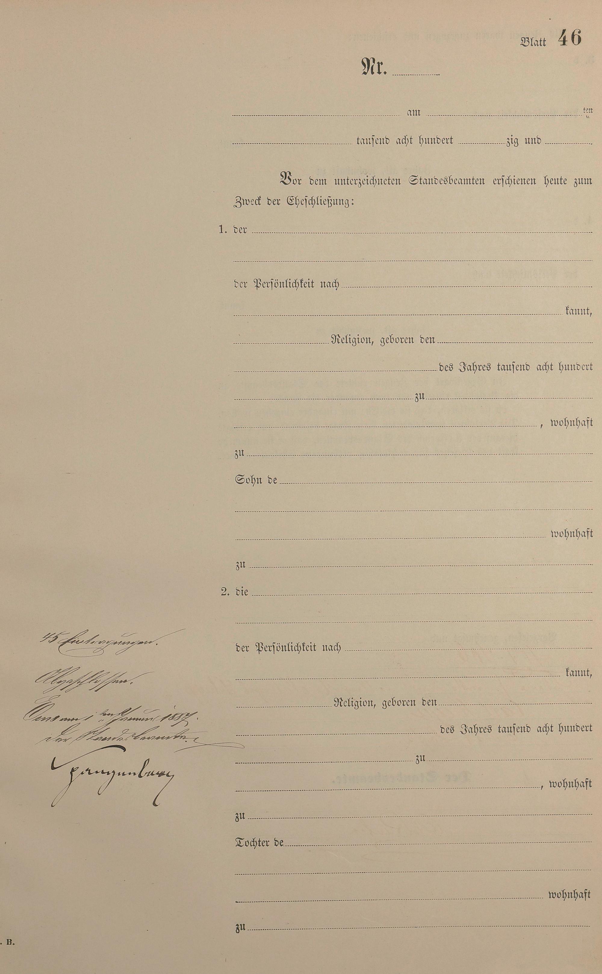 Heiratsregister 1886