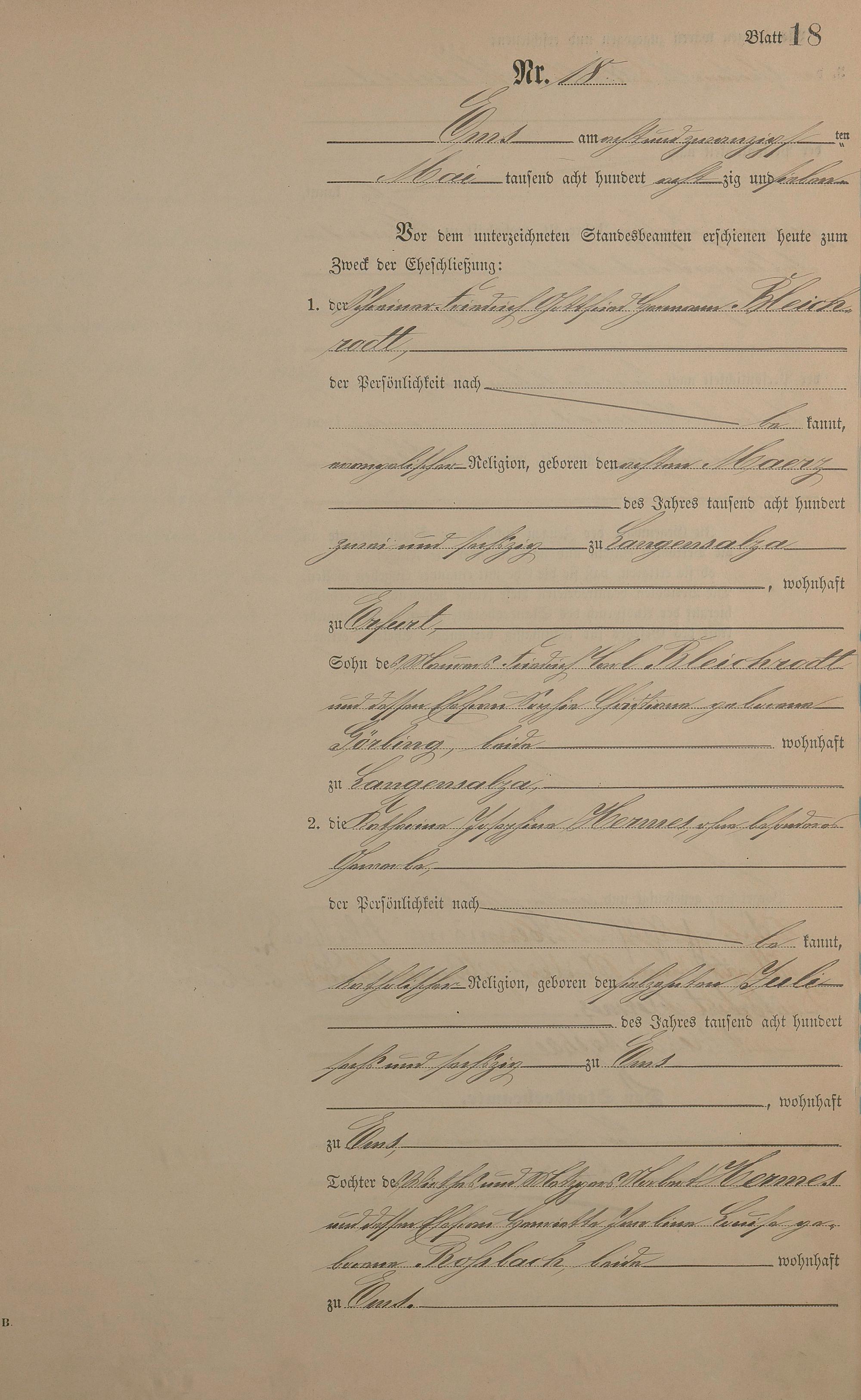 Heiratsregister 1887