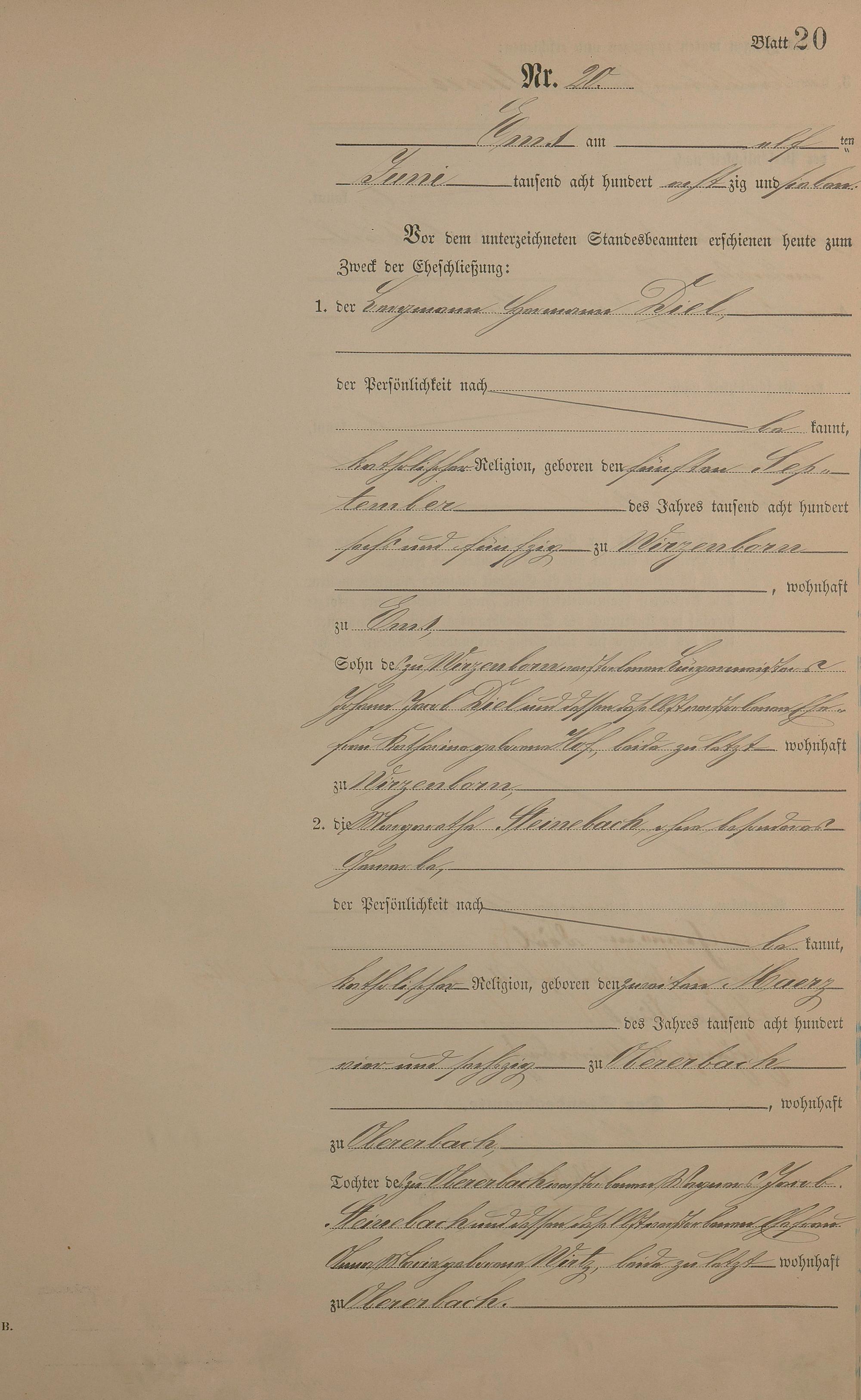 Heiratsregister 1887