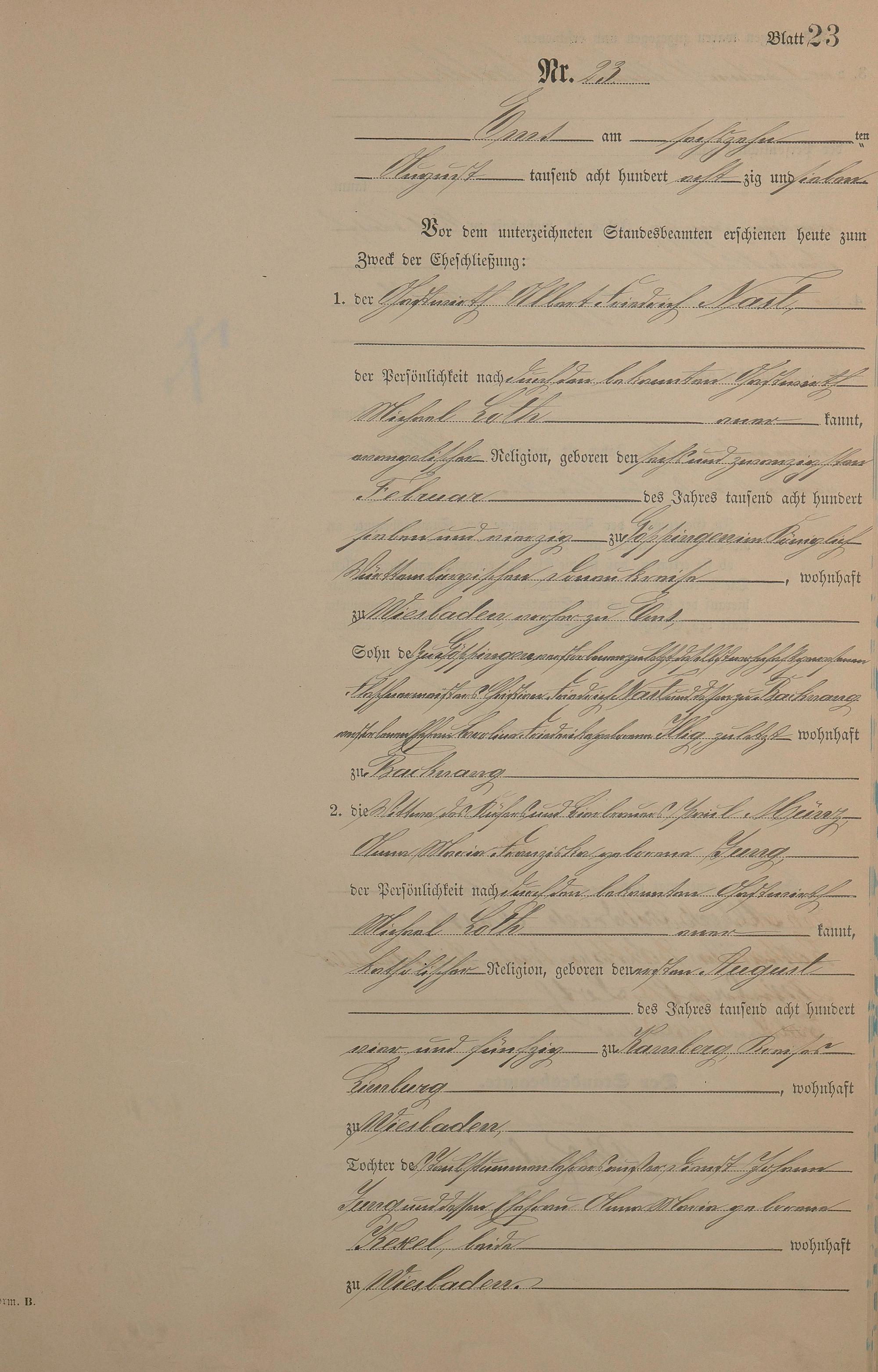 Heiratsregister 1887