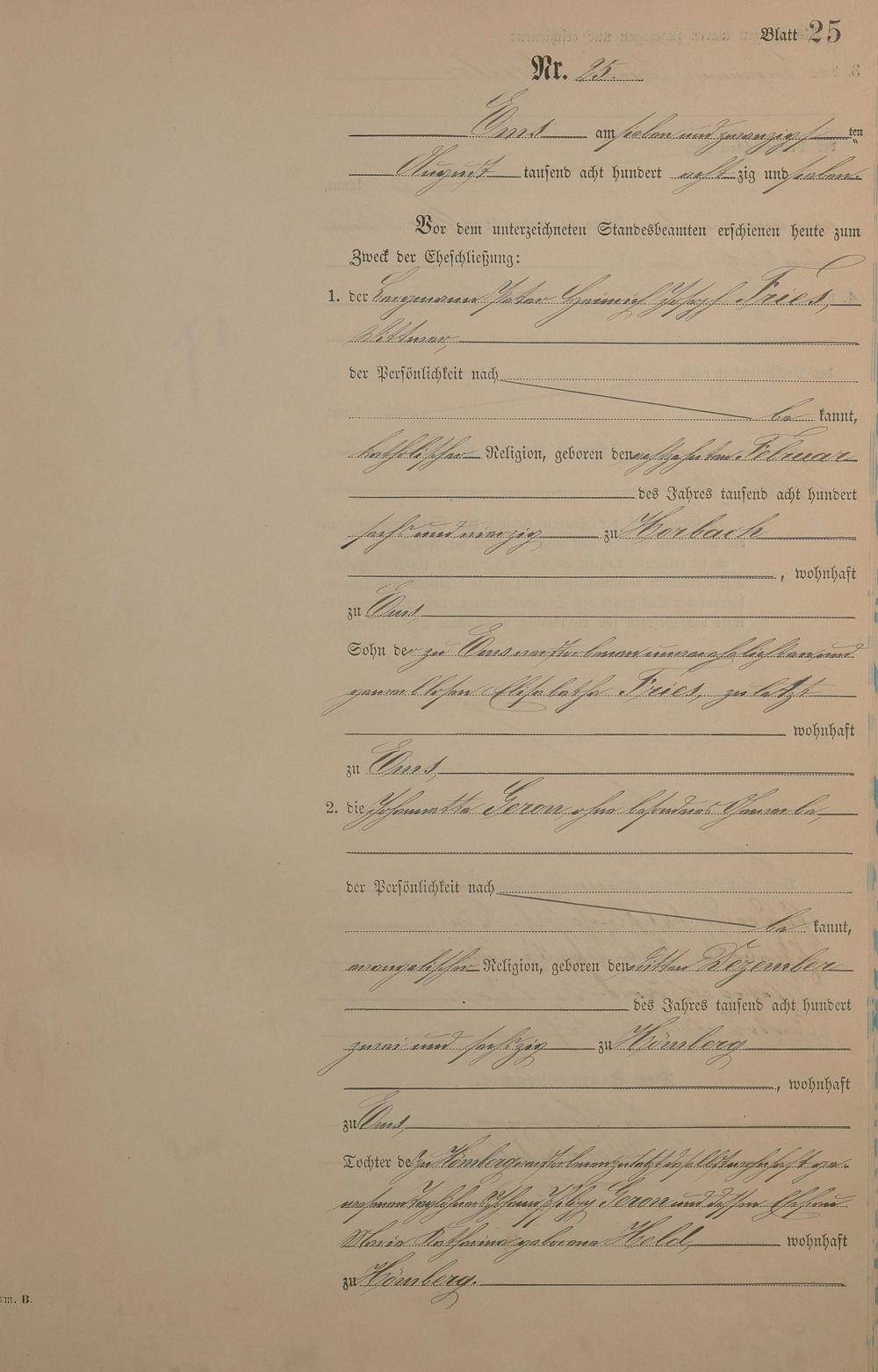 Heiratsregister 1887