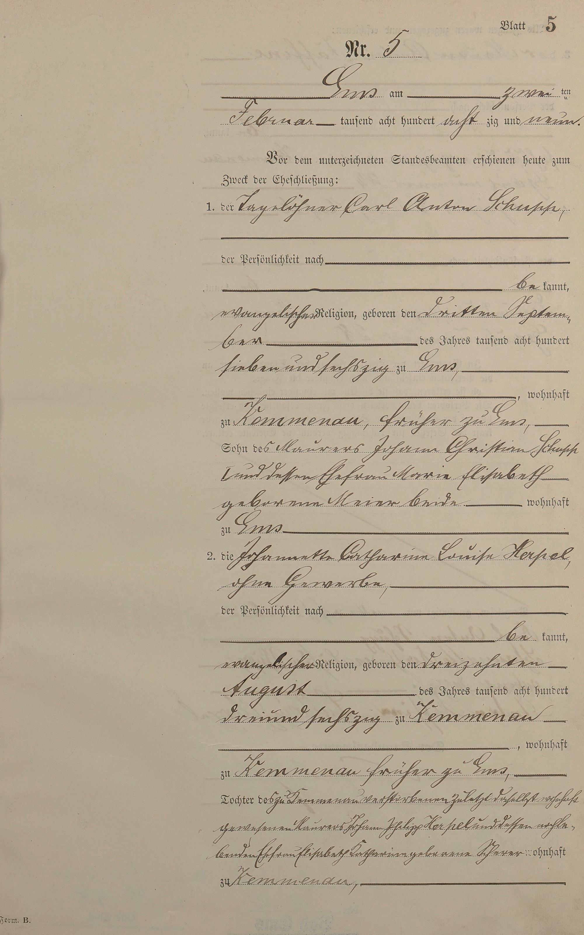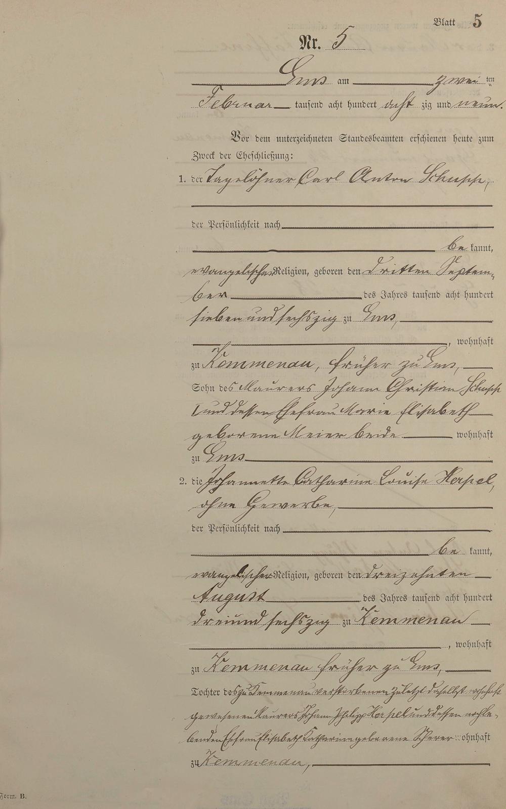 1365: Heiratsregister 1889