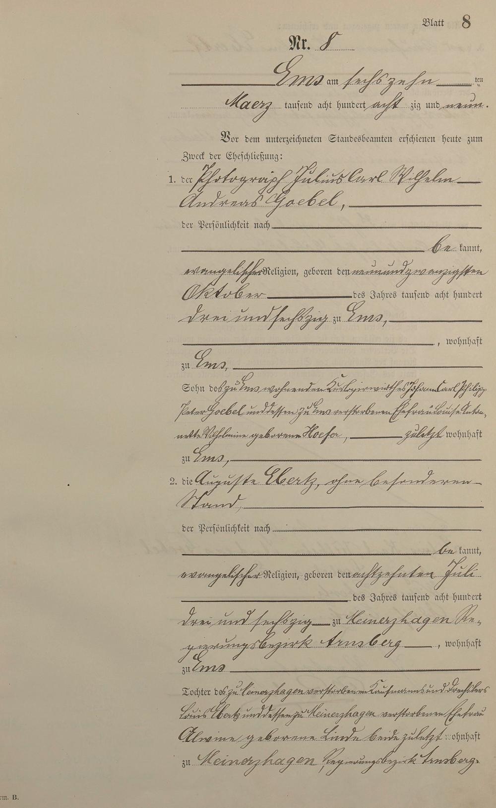 Heiratsregister 1889