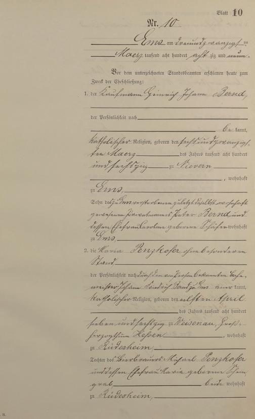 Heiratsregister 1889