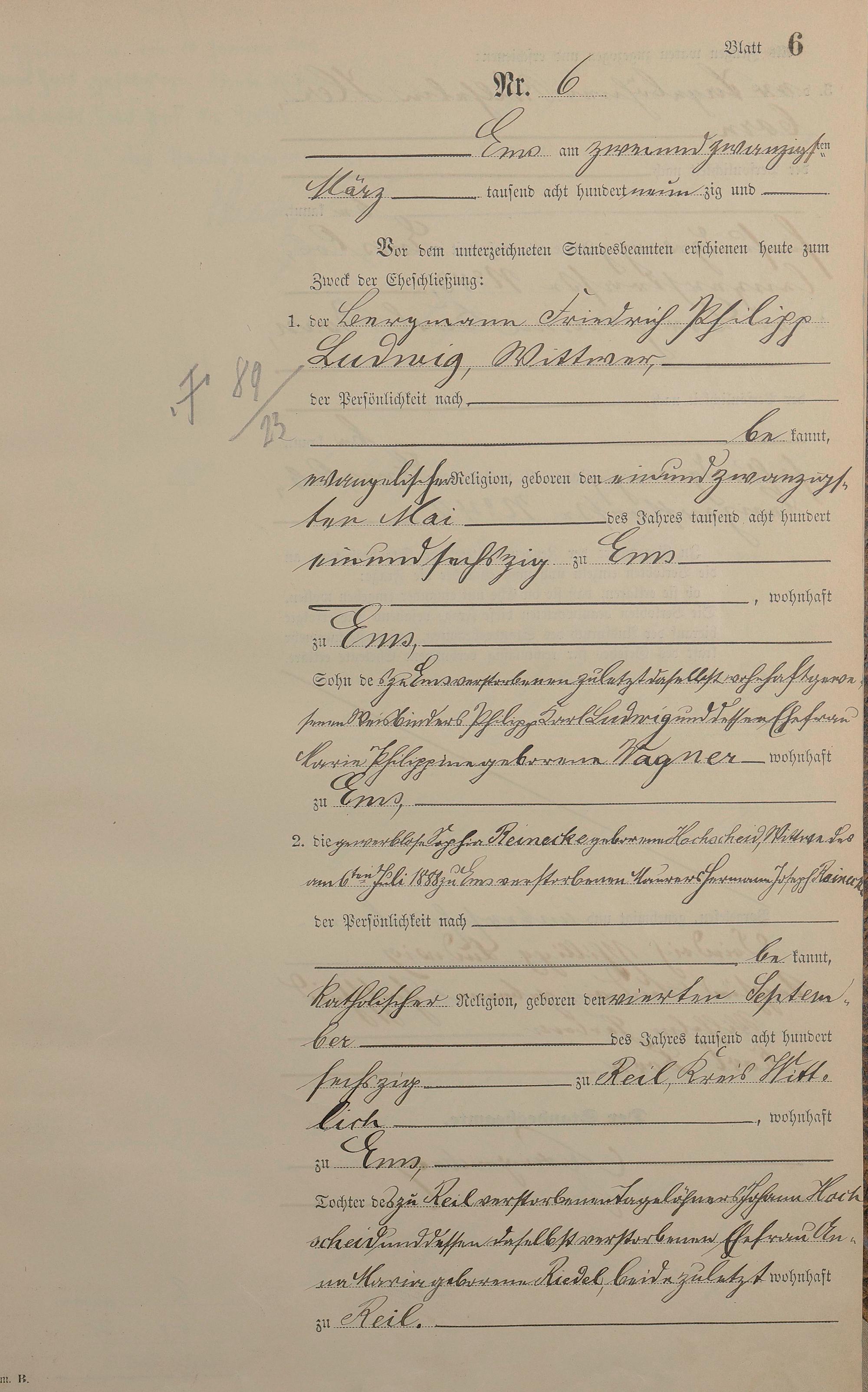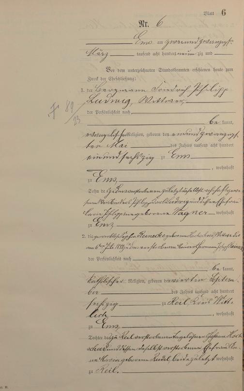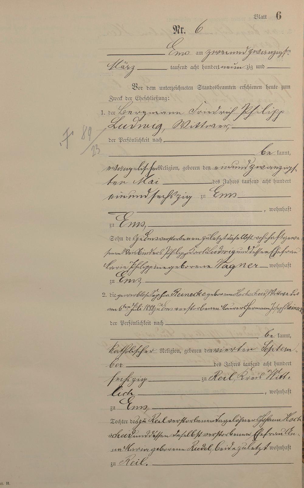 Heiratsregister 1890