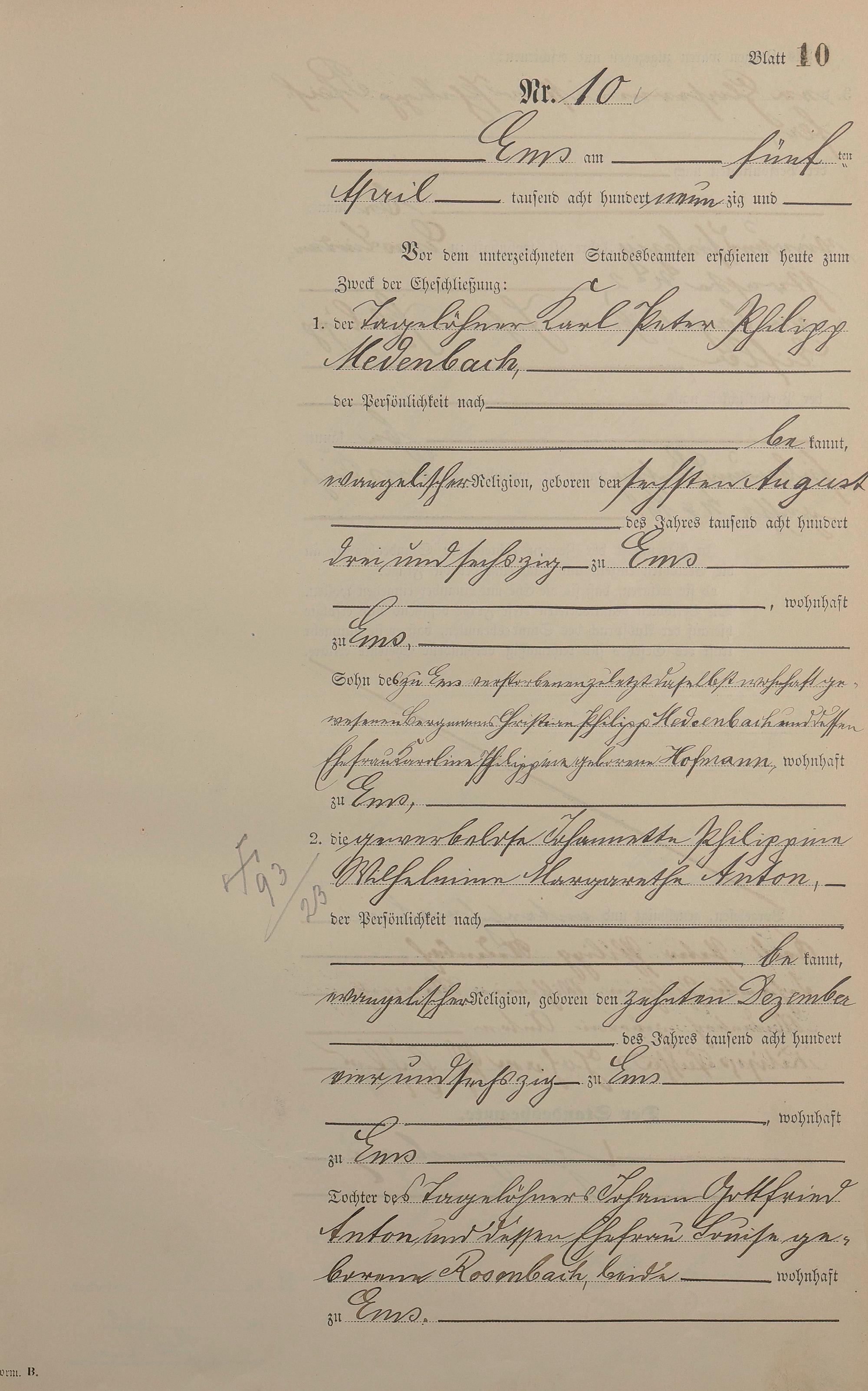 Heiratsregister 1890