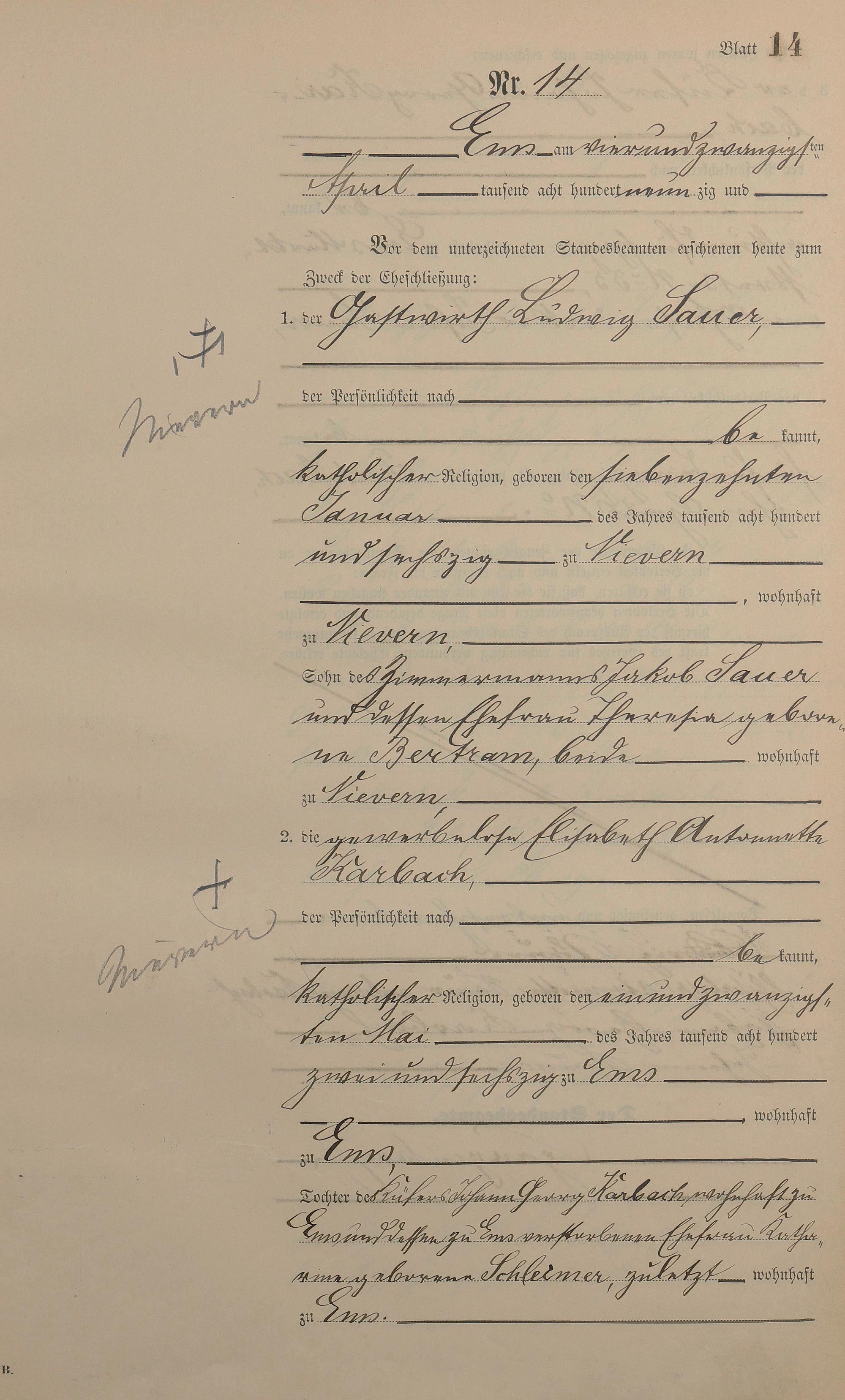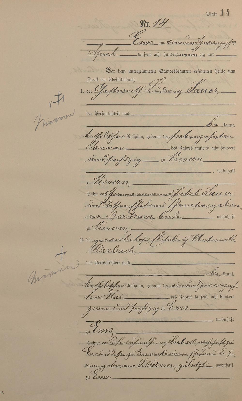 1366: Heiratsregister 1890