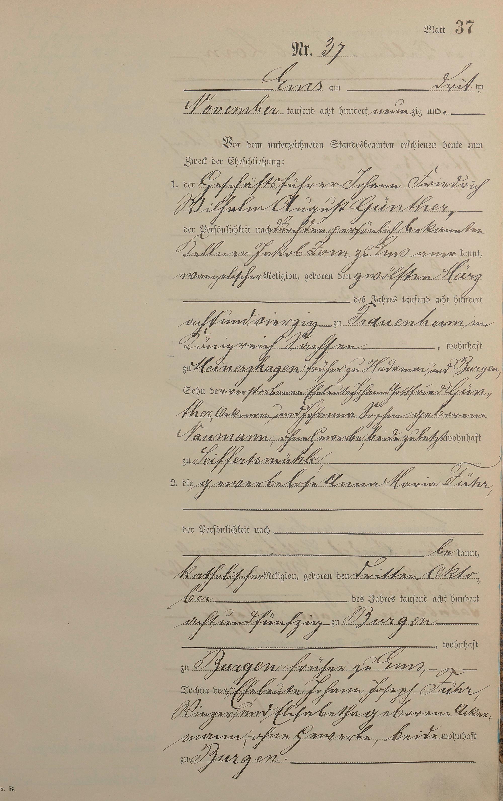 Heiratsregister 1890