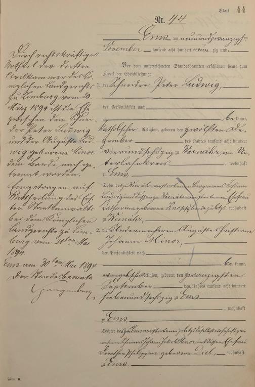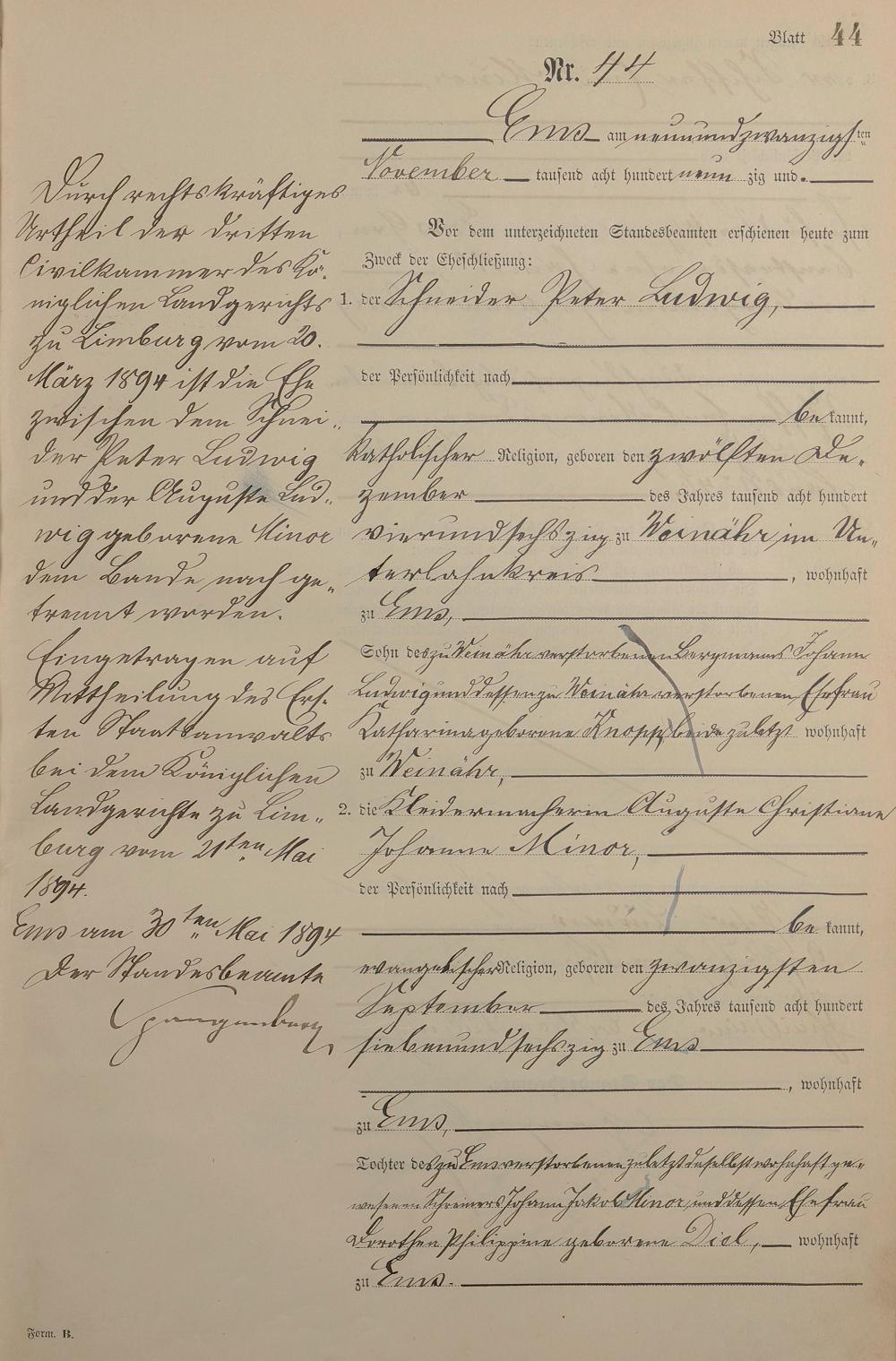 Heiratsregister 1890