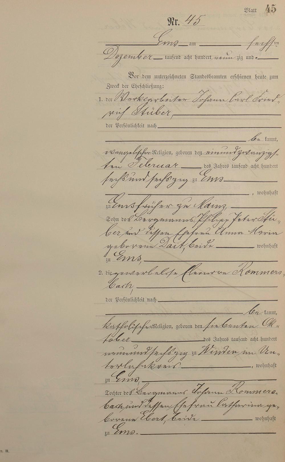 Heiratsregister 1890