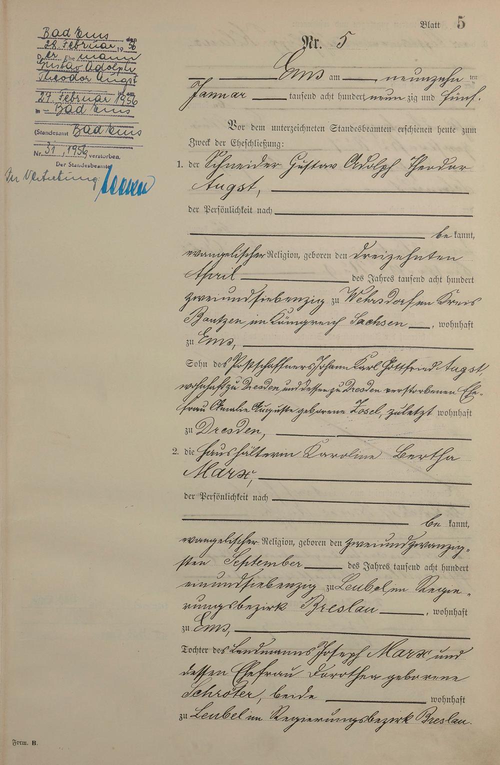 Heiratsregister 1895