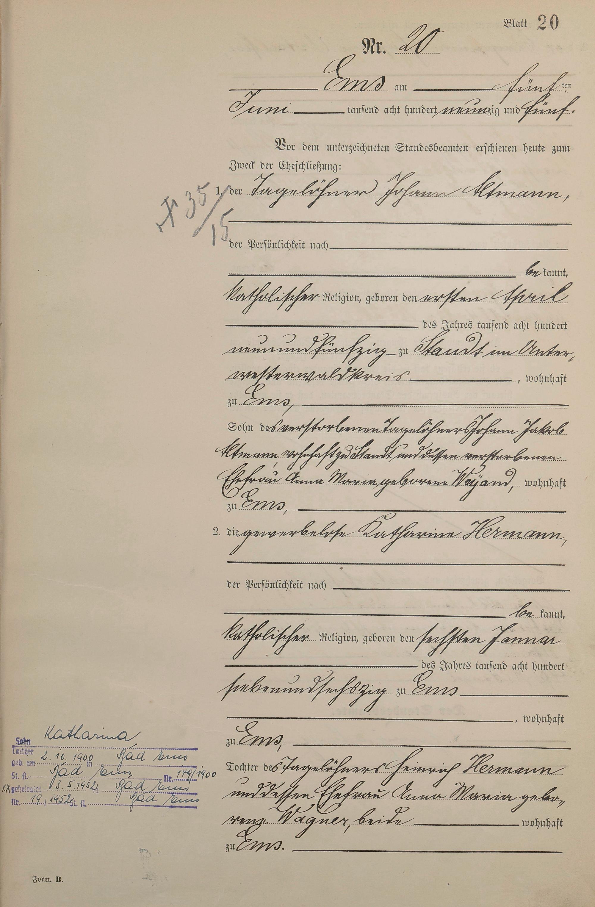1371: Heiratsregister 1895