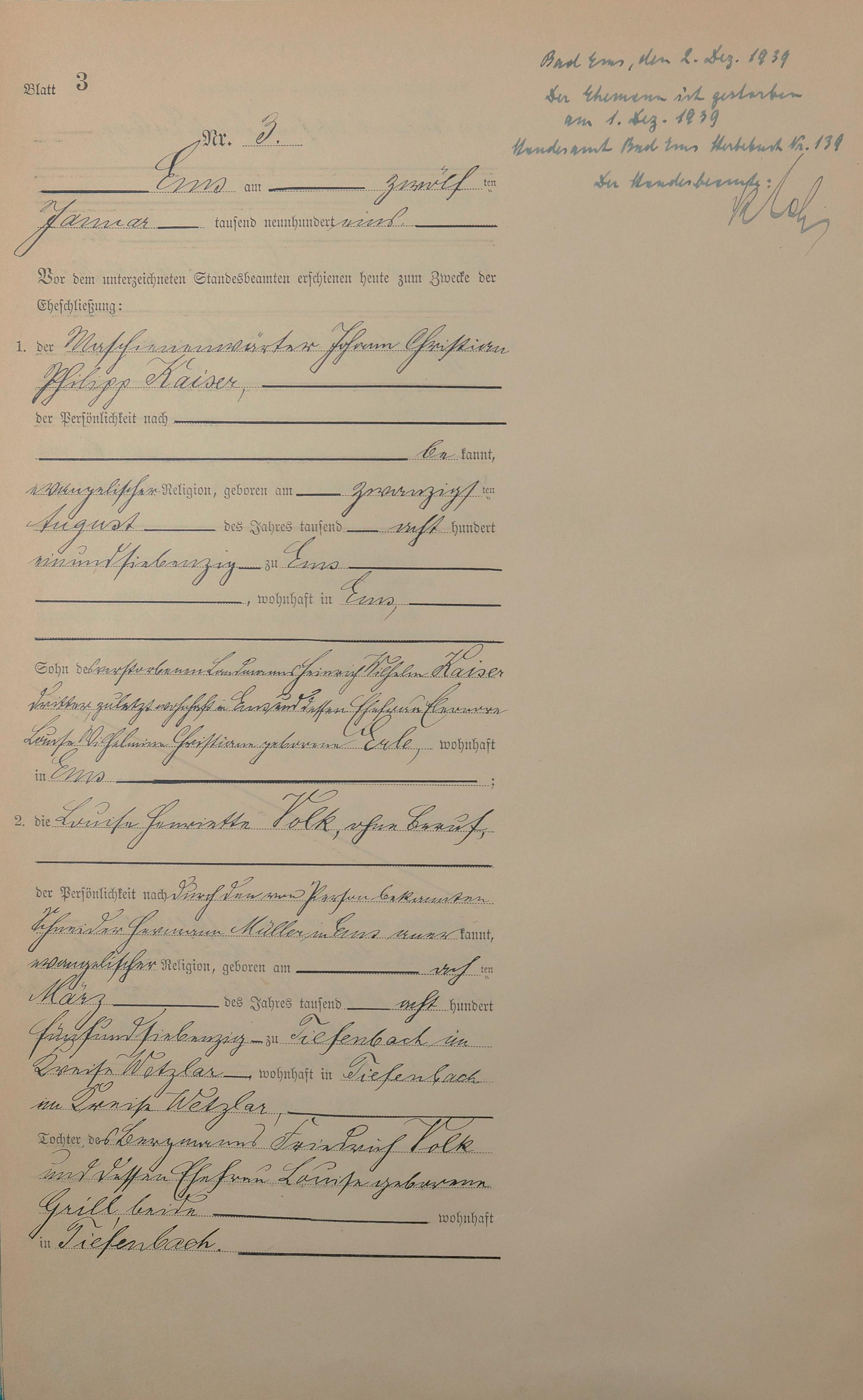 Heiratsregister 1901