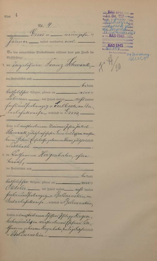 Heiratsregister 1901