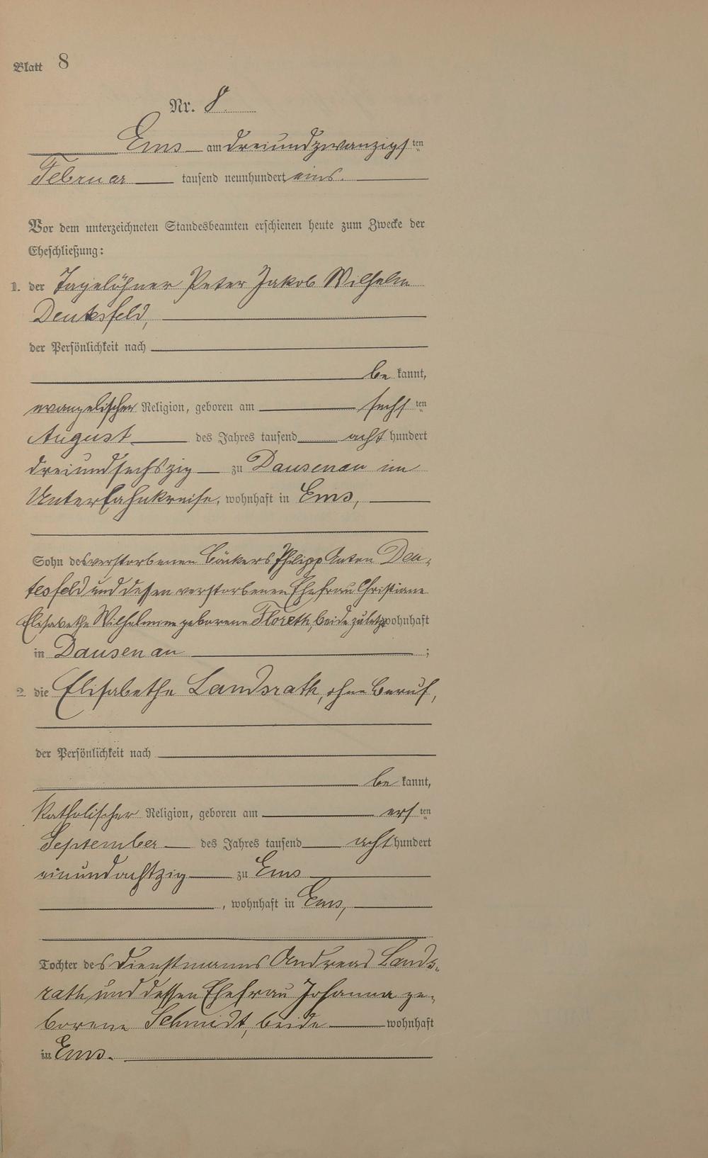 Heiratsregister 1901