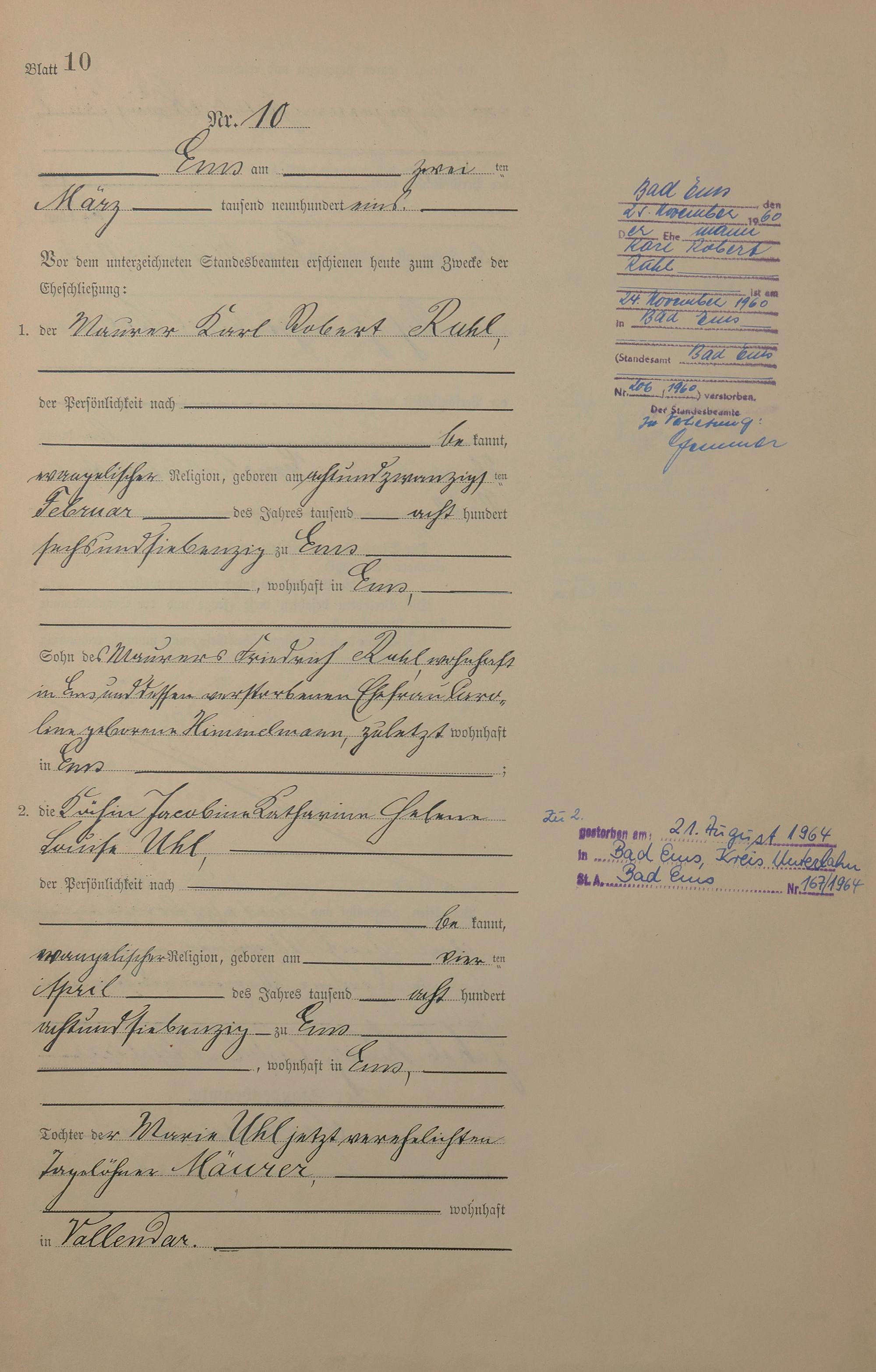 Heiratsregister 1901