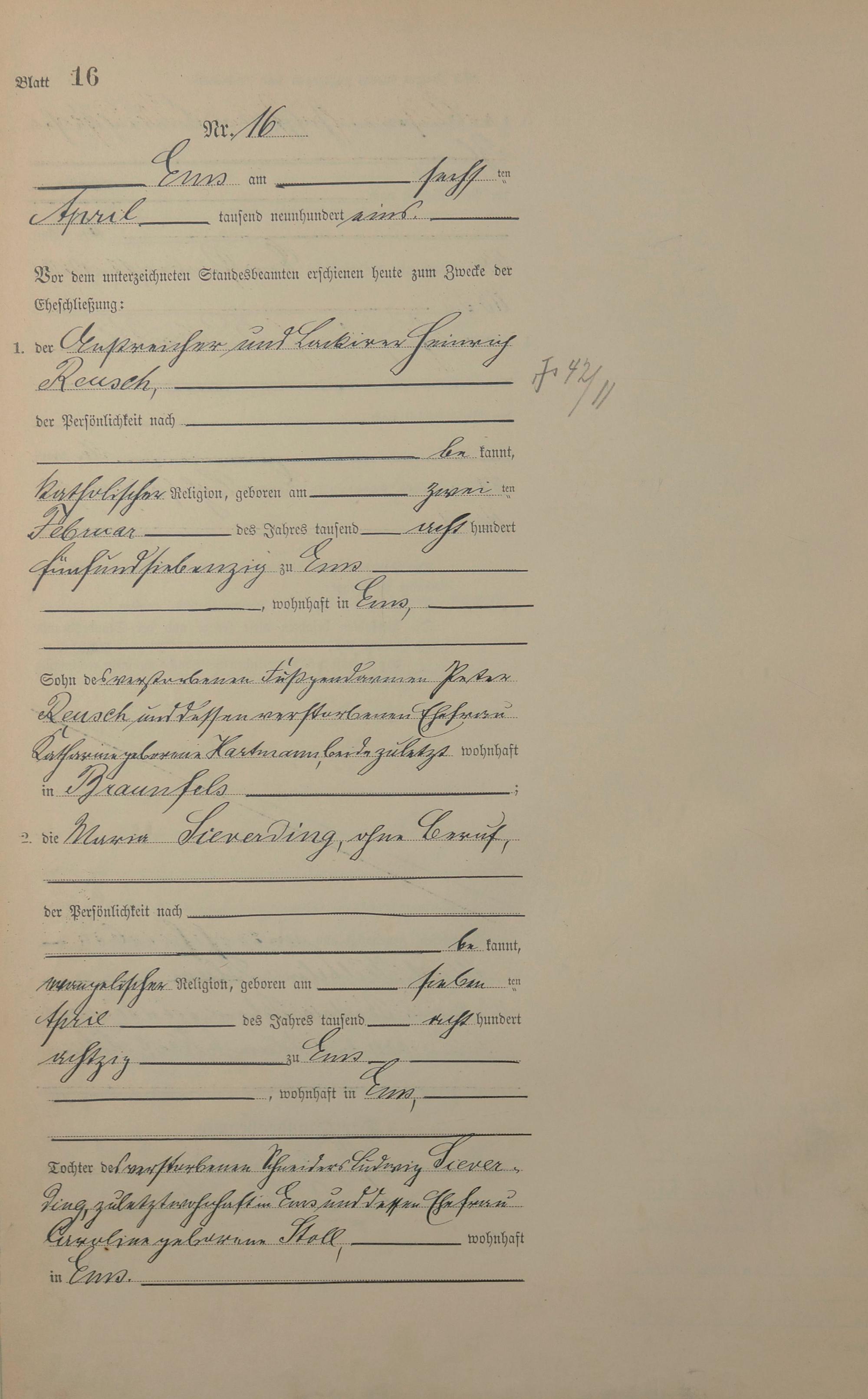 1377: Heiratsregister 1901