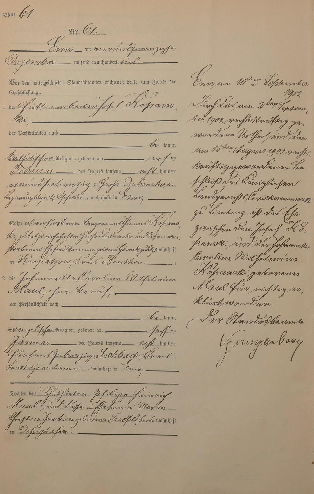 Heiratsregister 1901