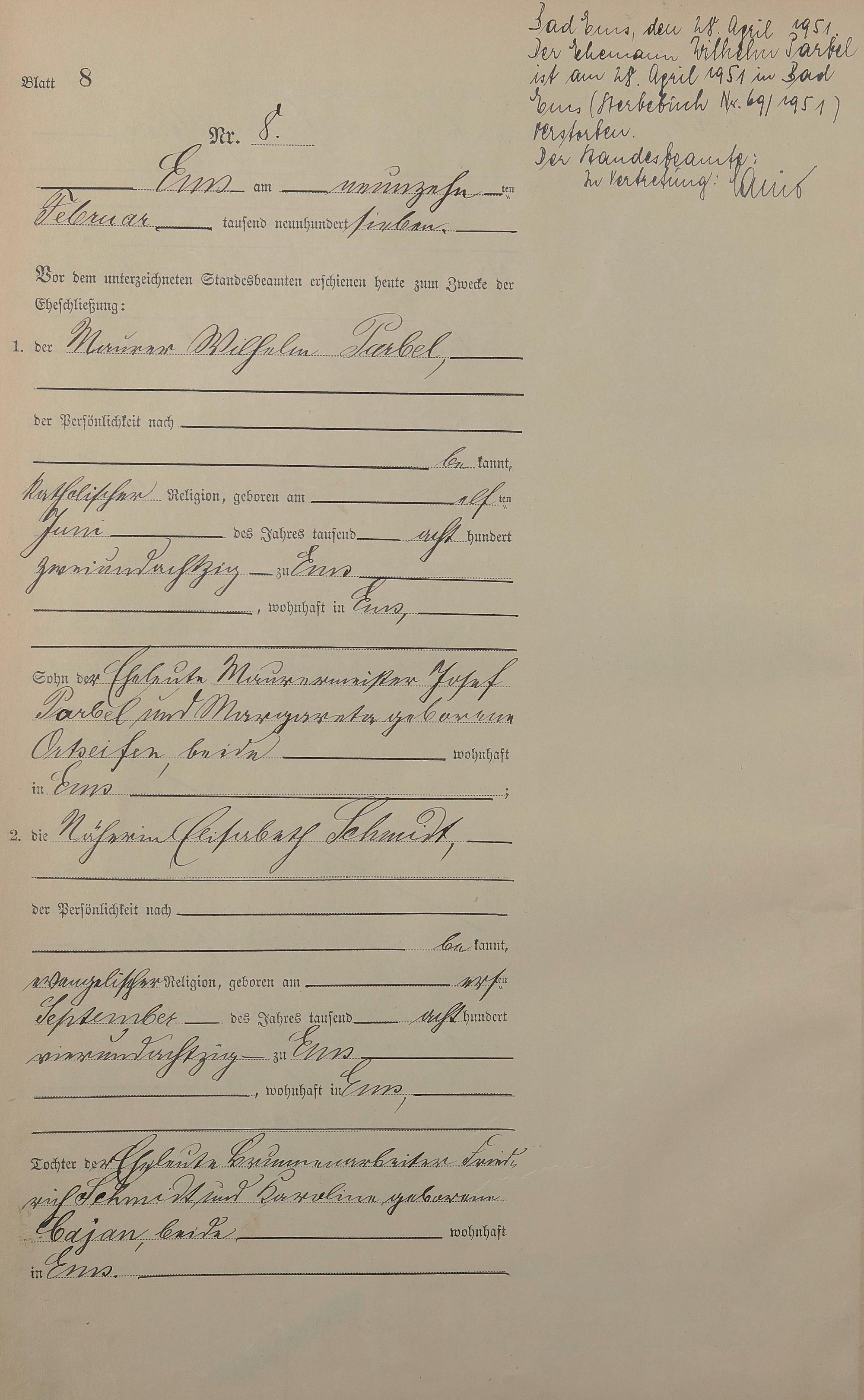 Heiratsregister 1907