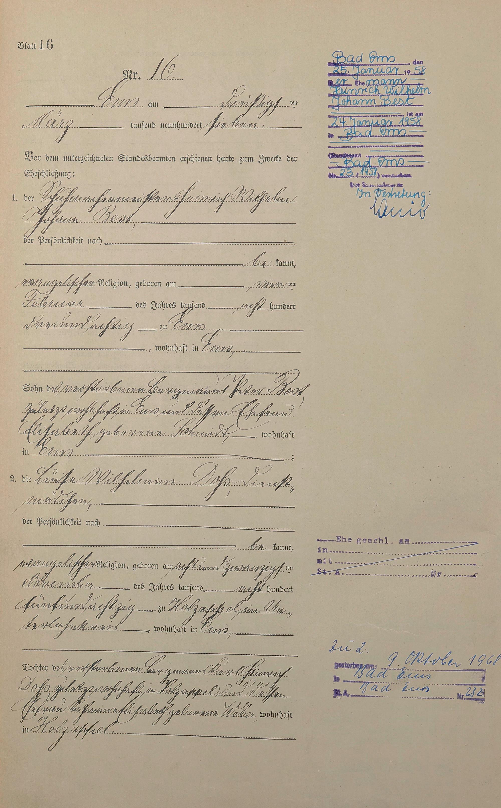 1383: Heiratsregister 1907