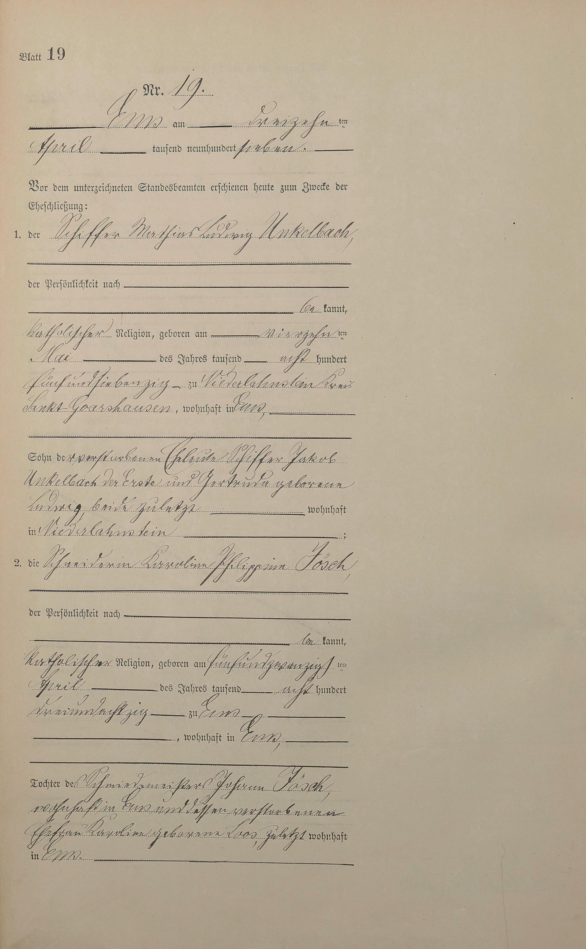 Heiratsregister 1907