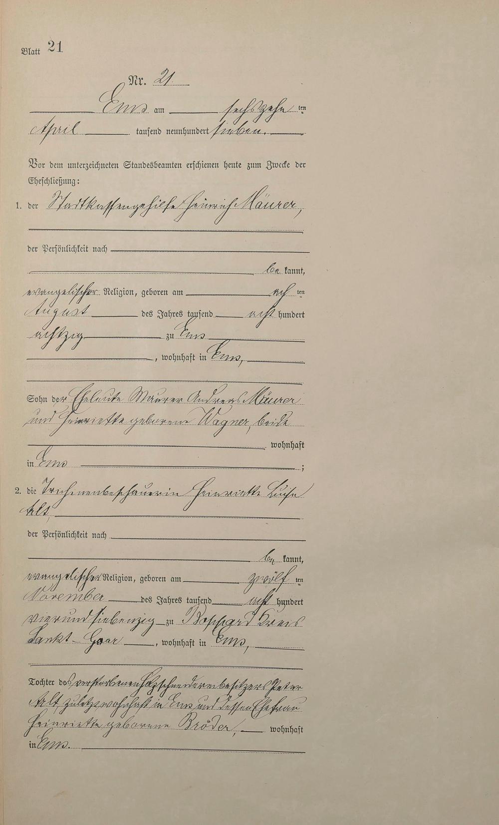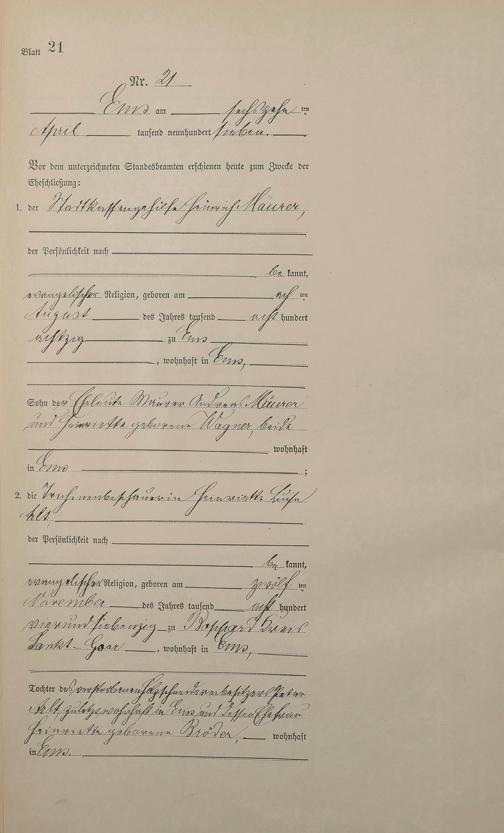 1383: Heiratsregister 1907