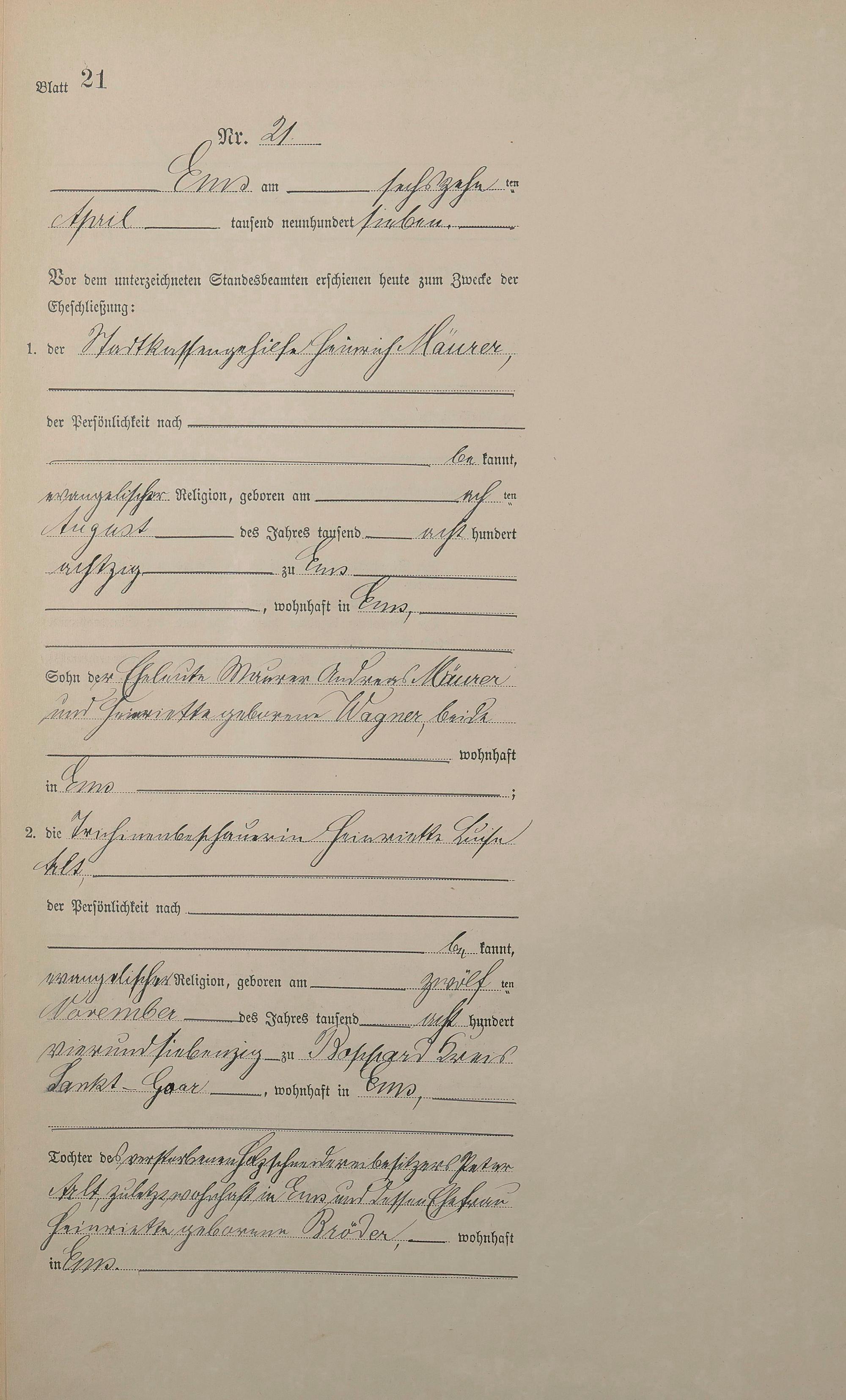 Heiratsregister 1907