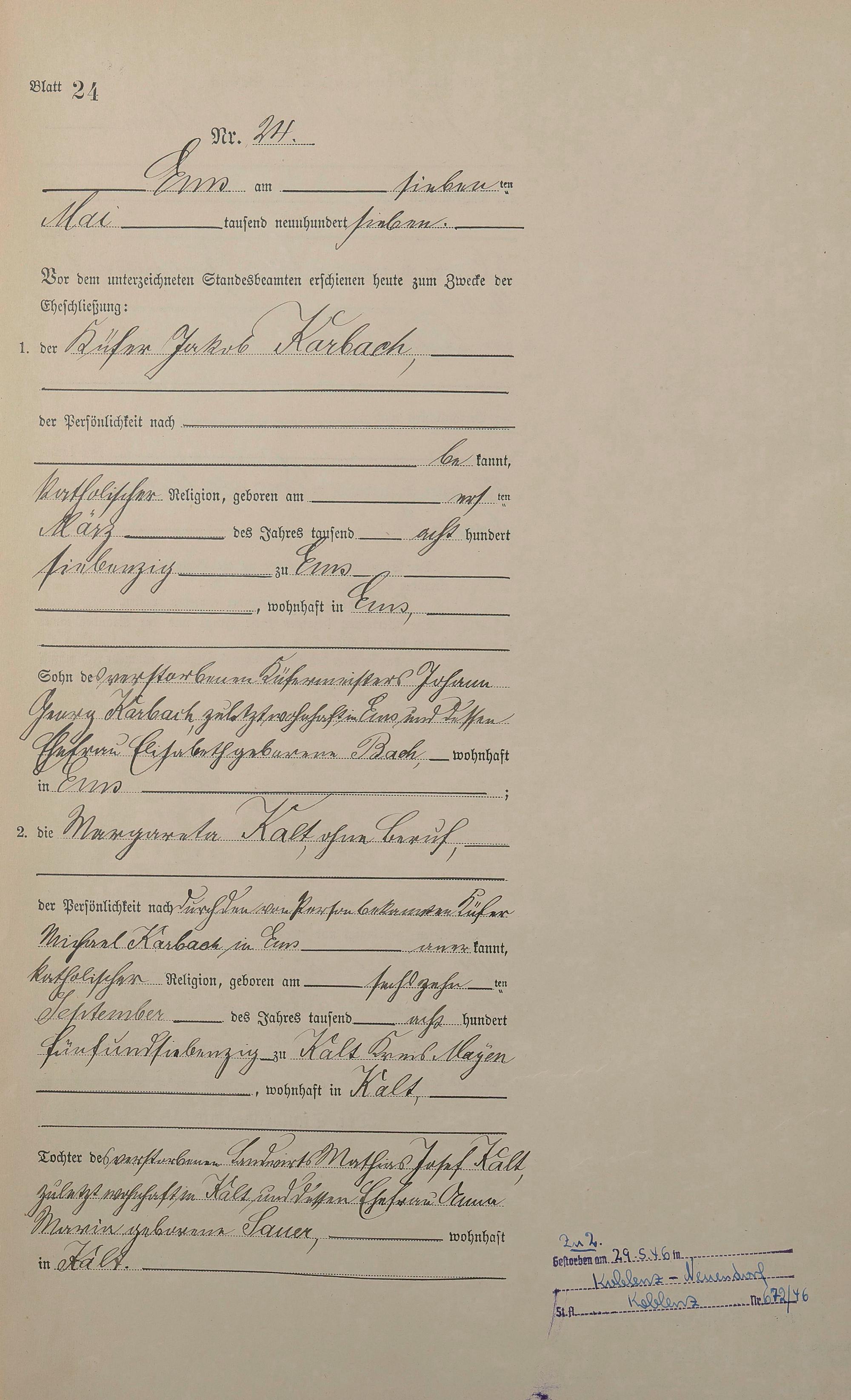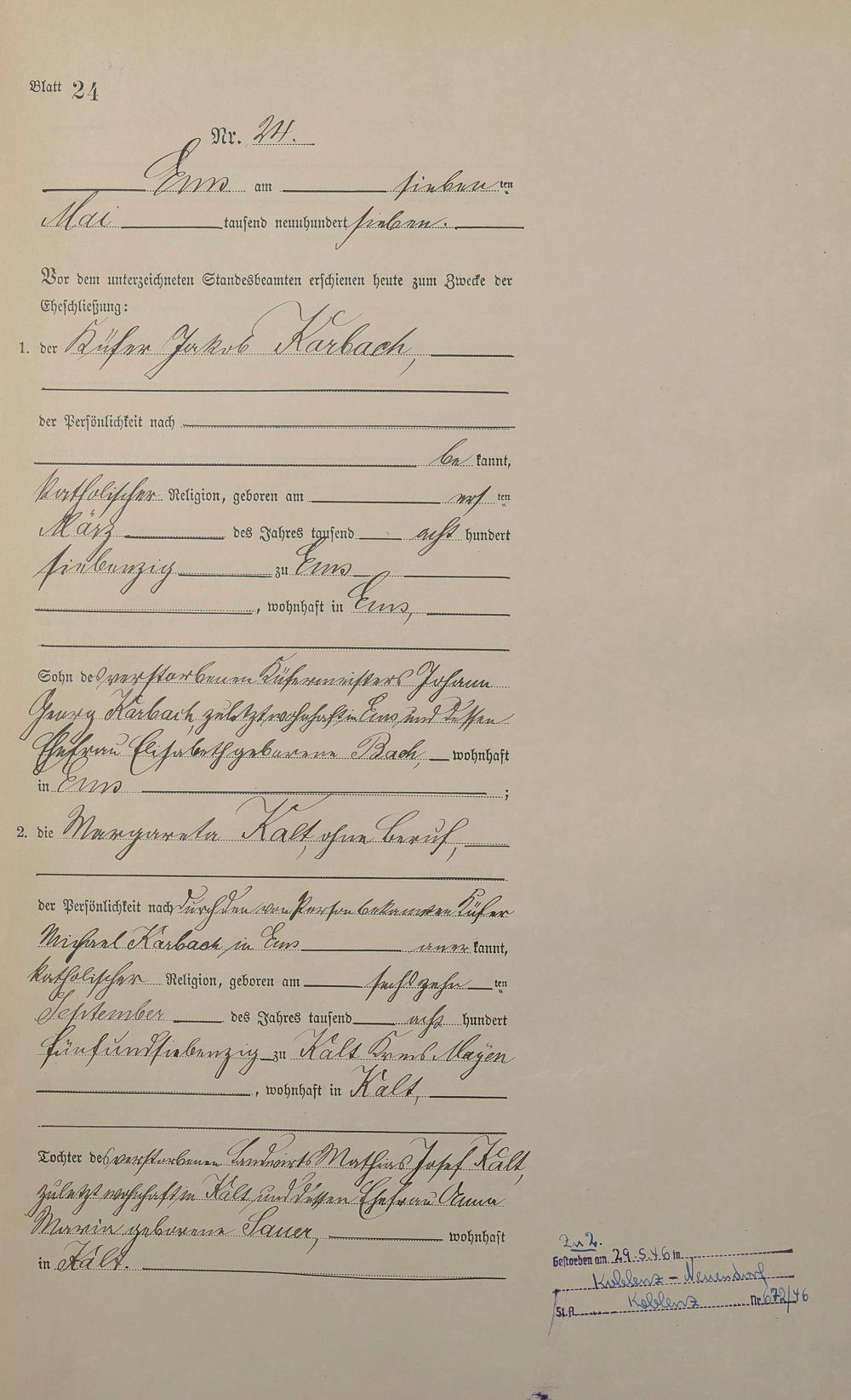 1383: Heiratsregister 1907