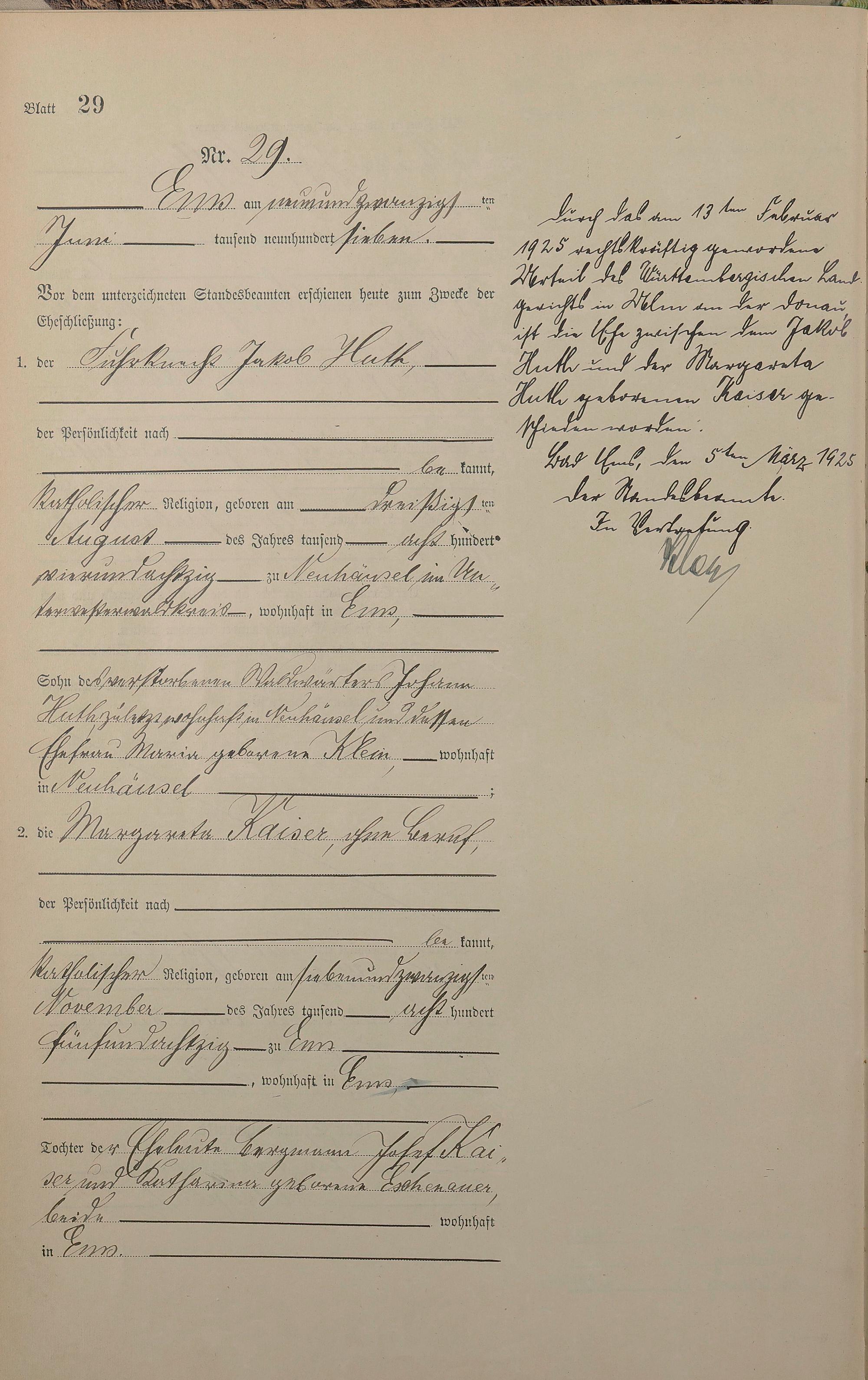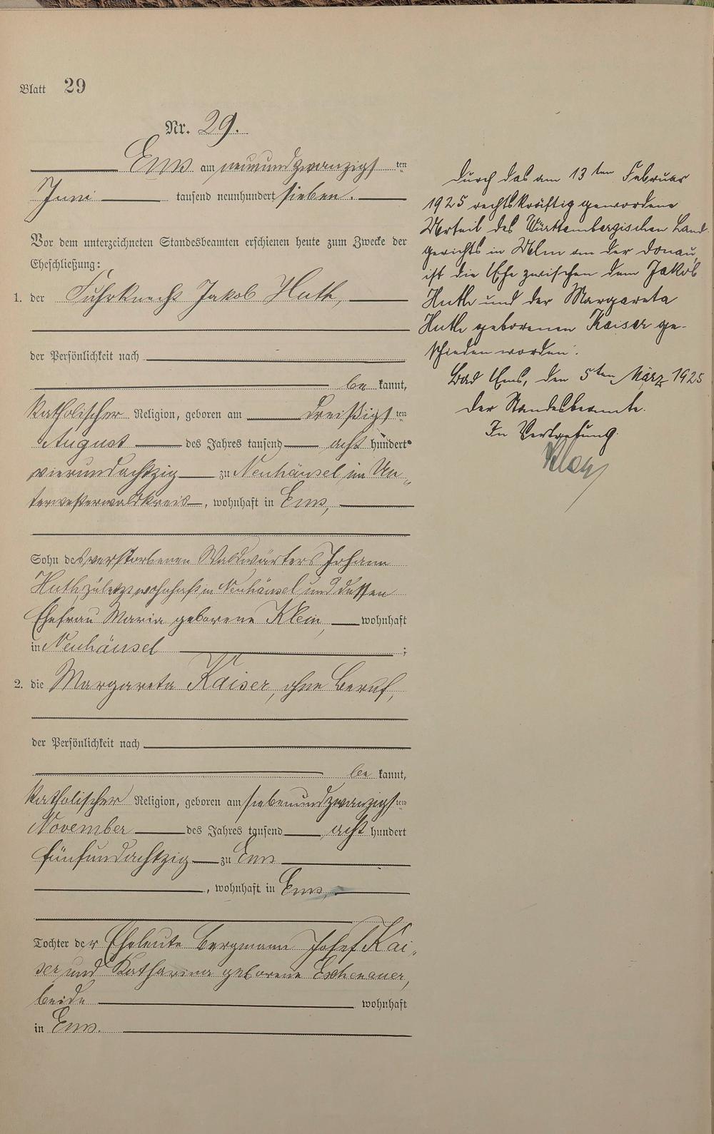 Heiratsregister 1907