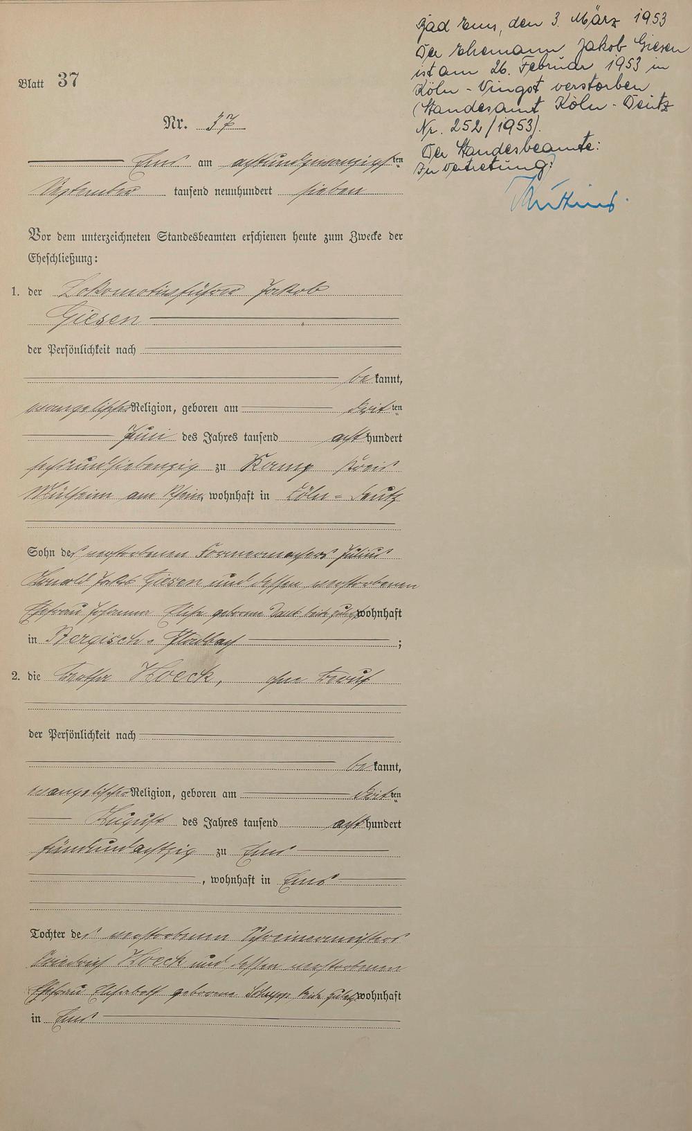 1383: Heiratsregister 1907