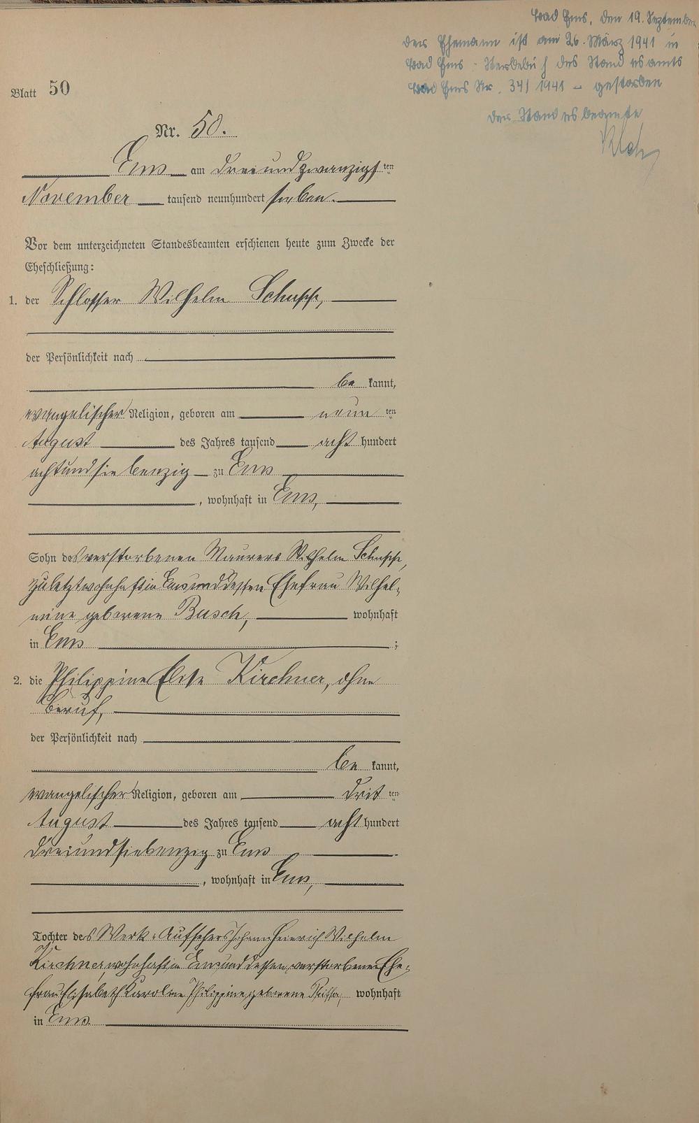 1383: Heiratsregister 1907