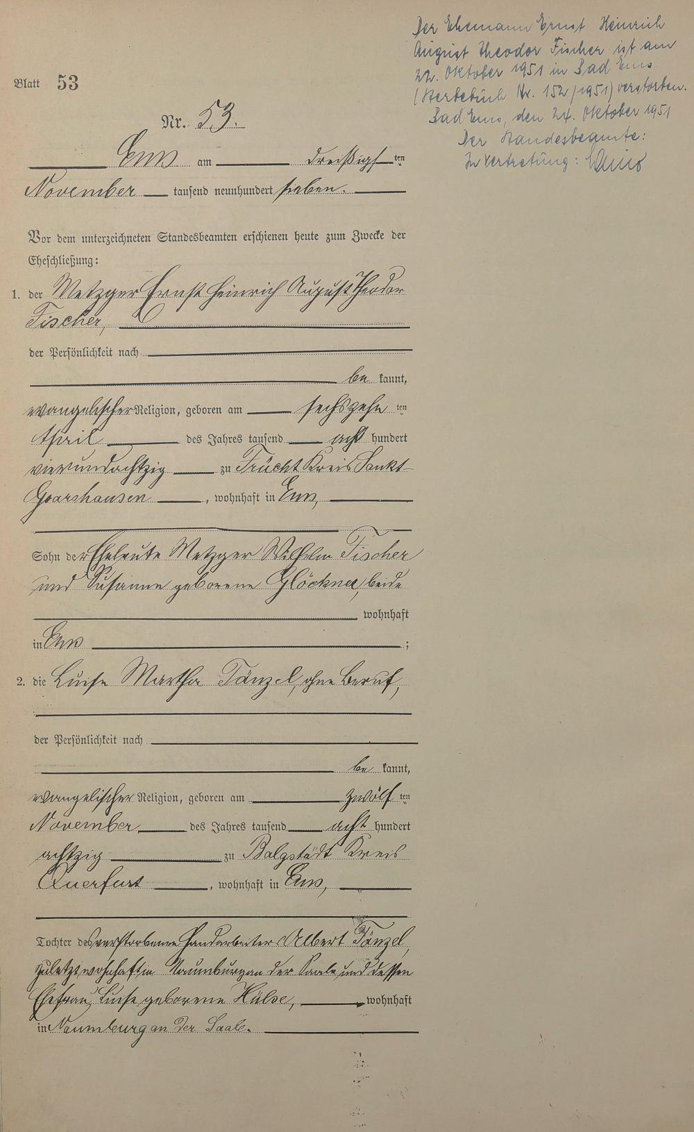 1383: Heiratsregister 1907