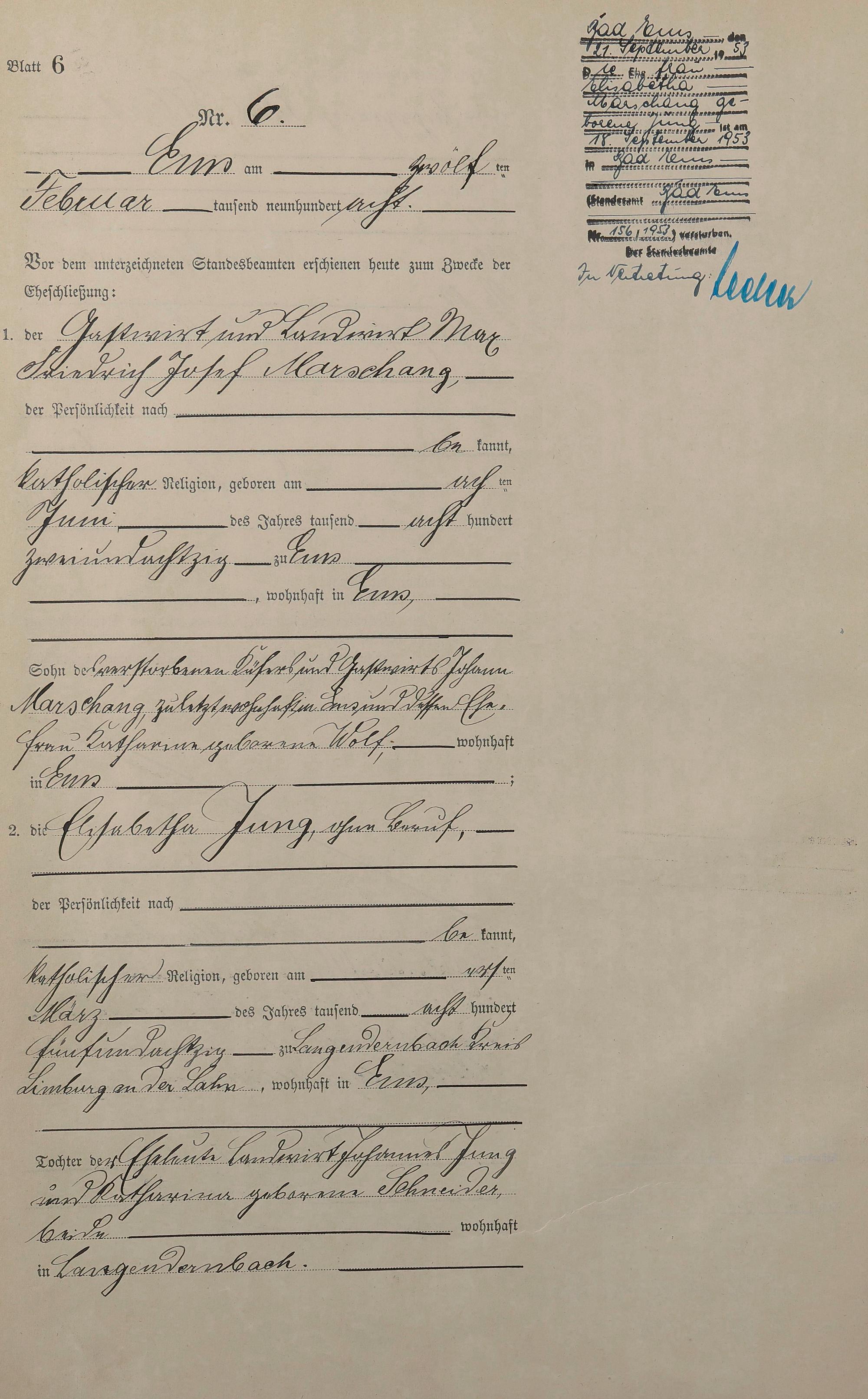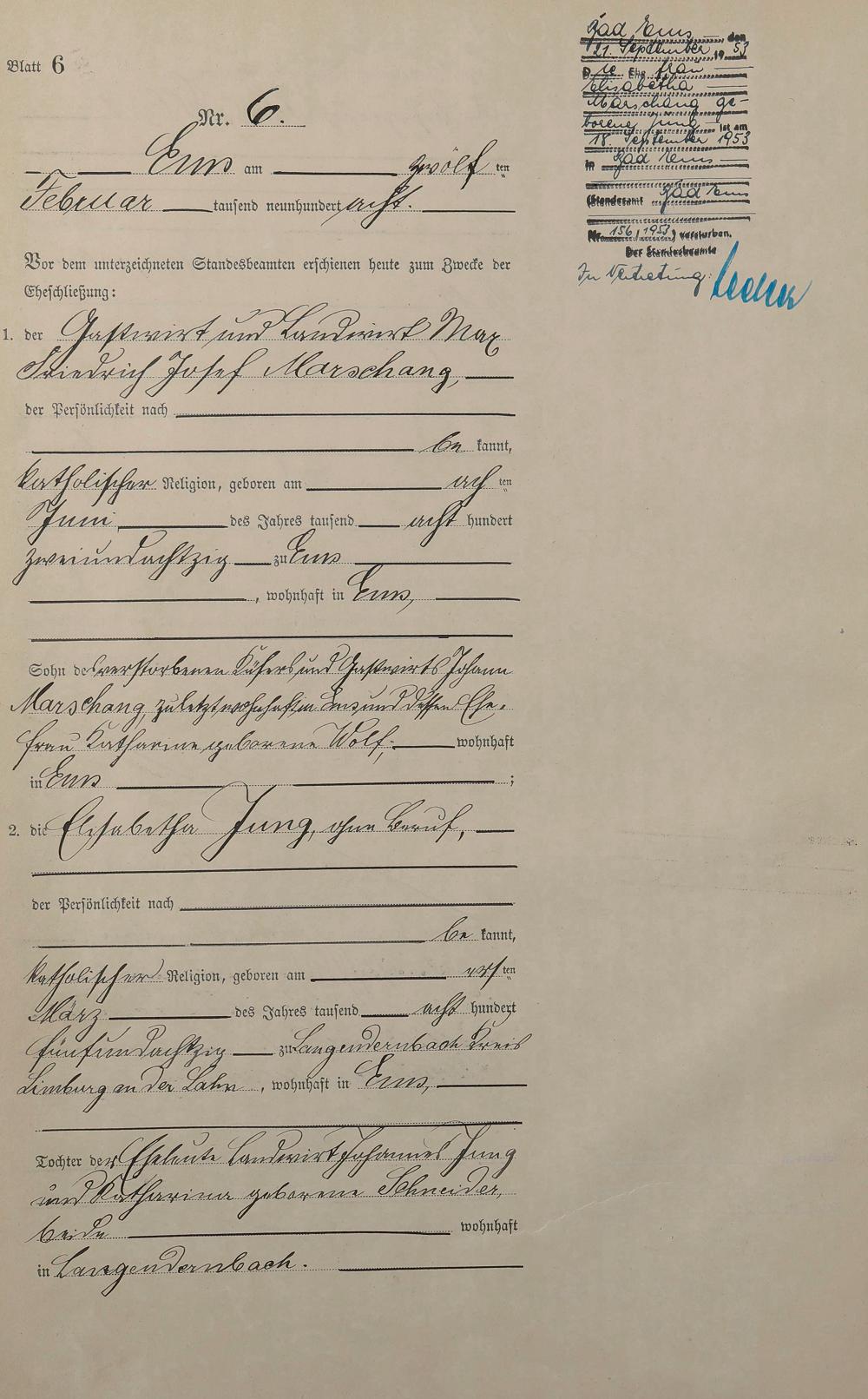 1384: Heiratsregister 1908