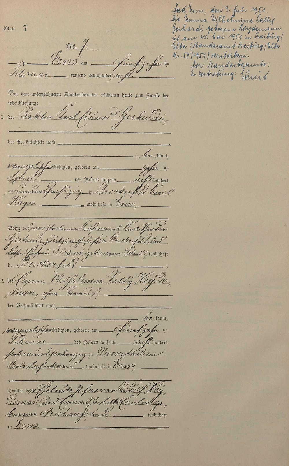 Heiratsregister 1908