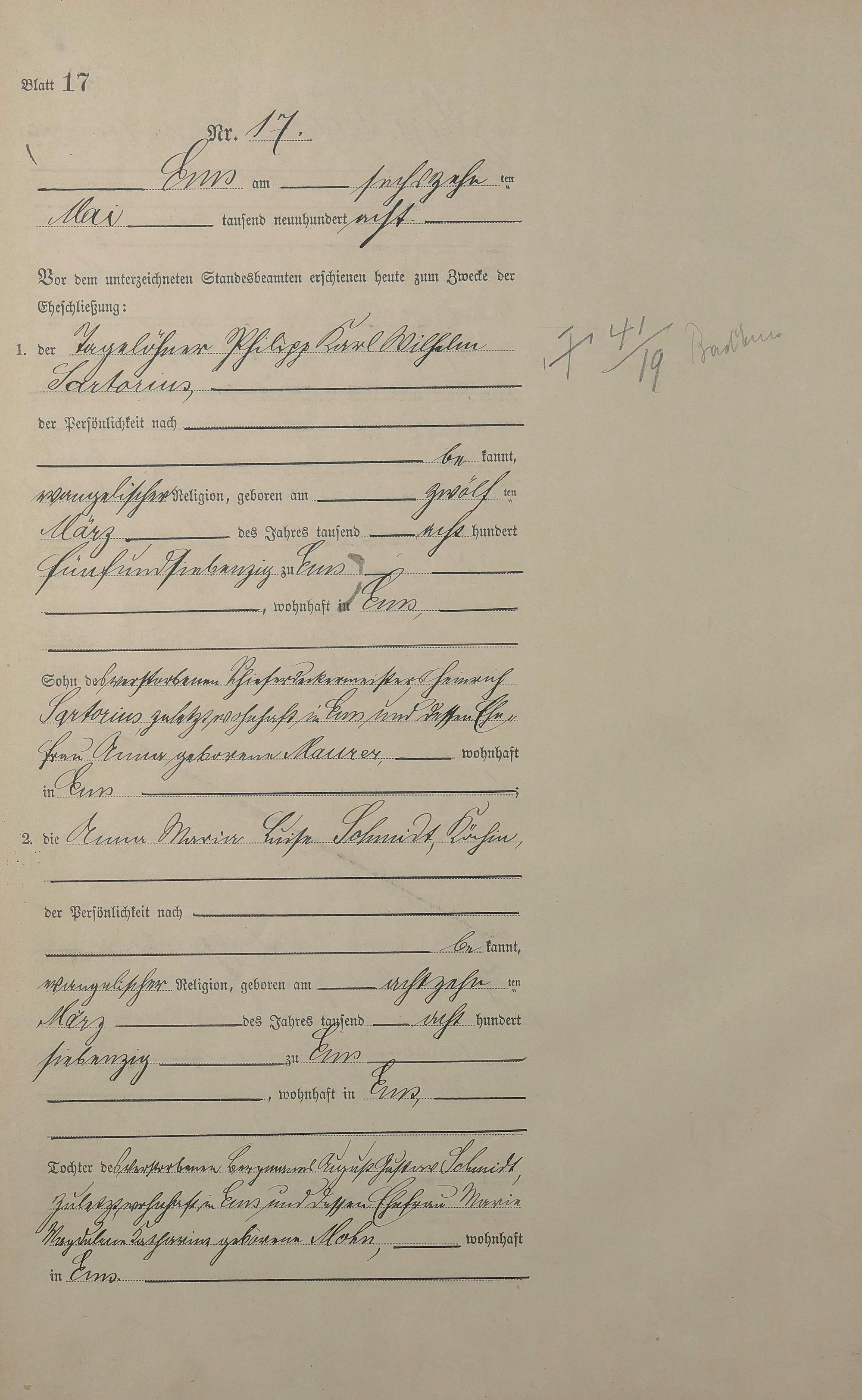 1384: Heiratsregister 1908