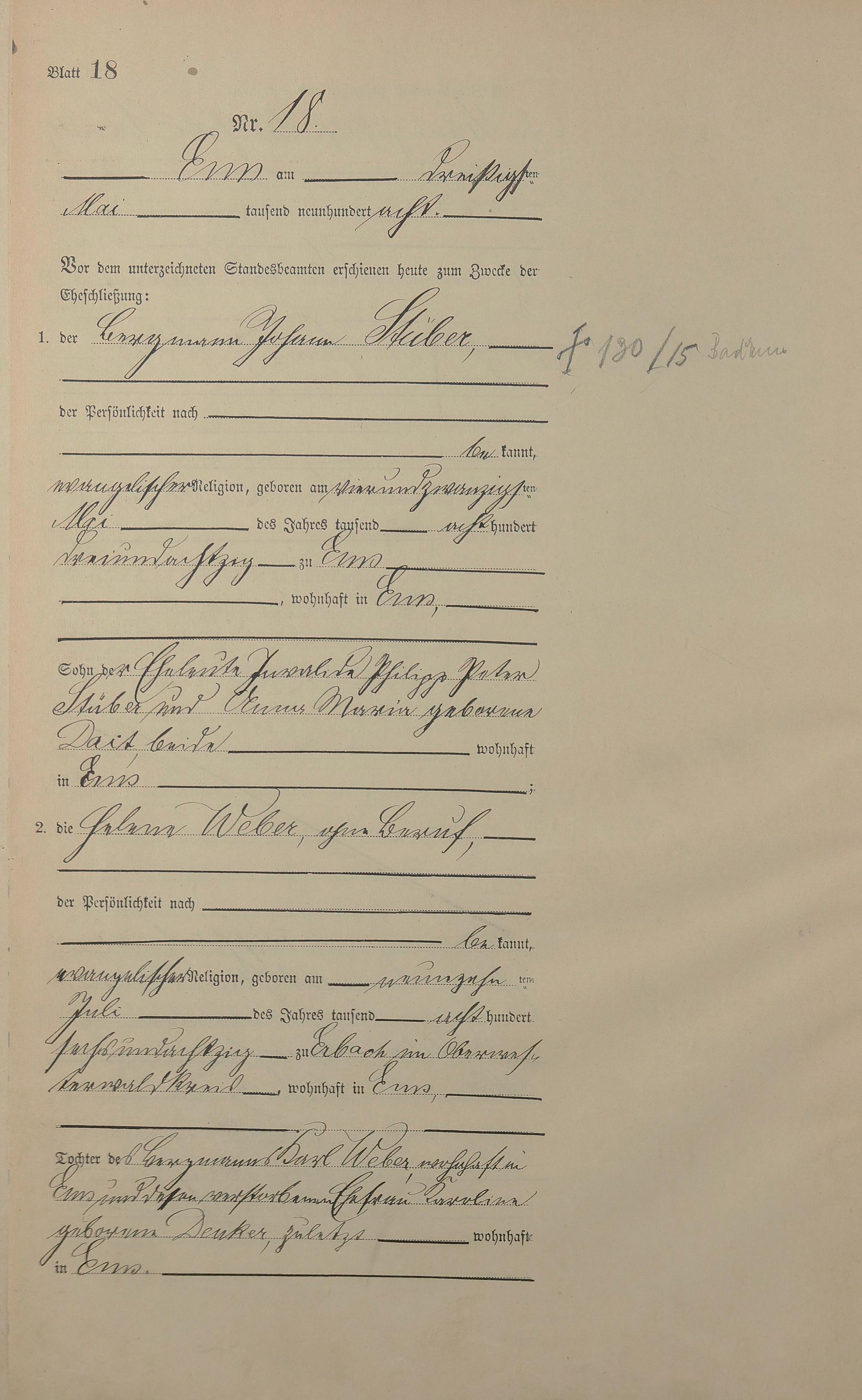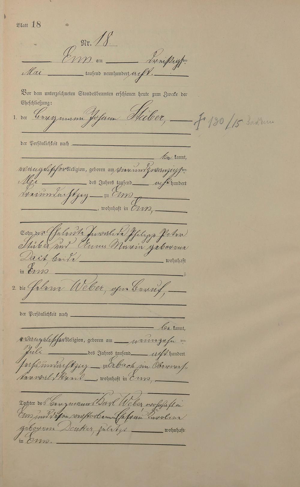 1384: Heiratsregister 1908