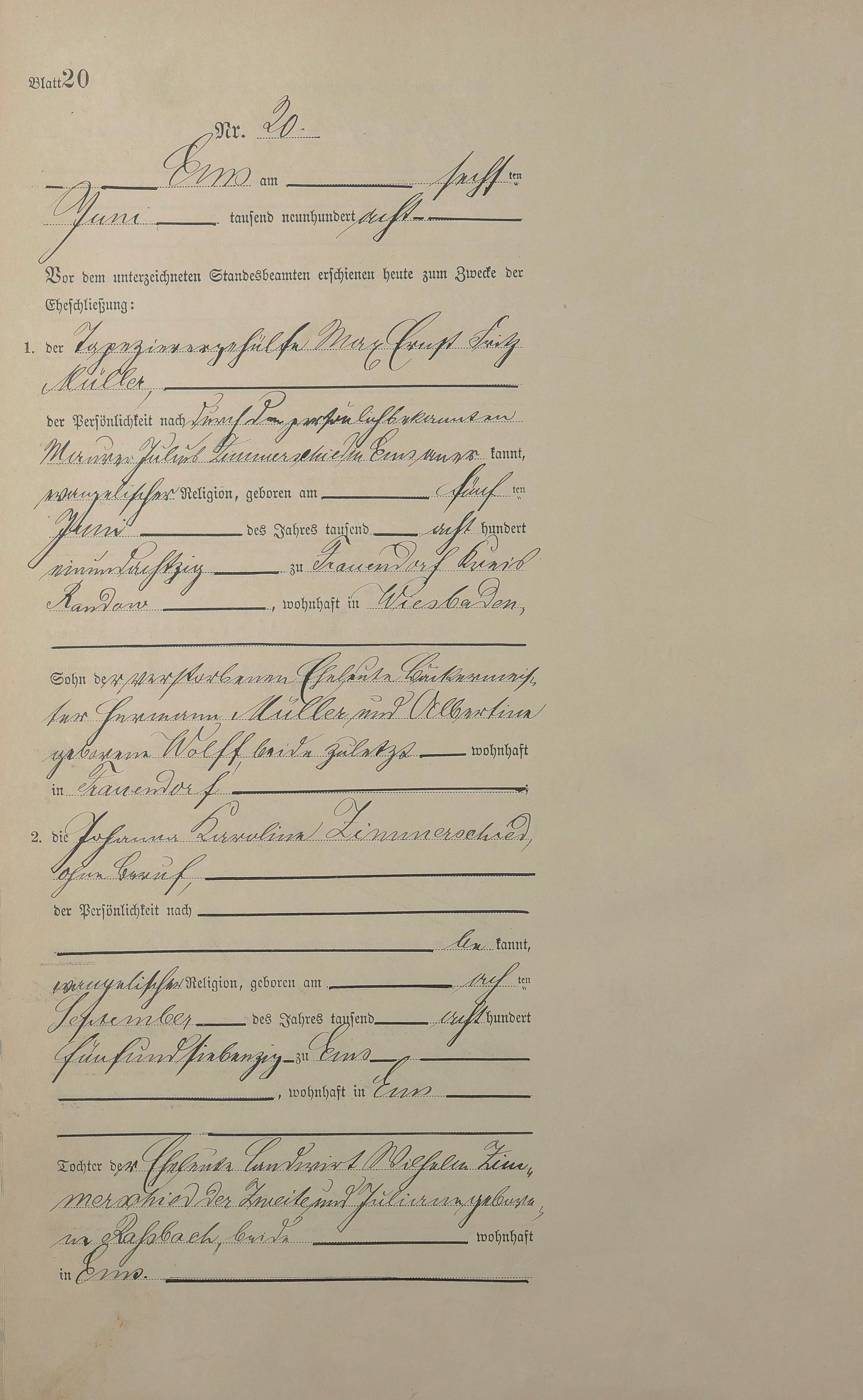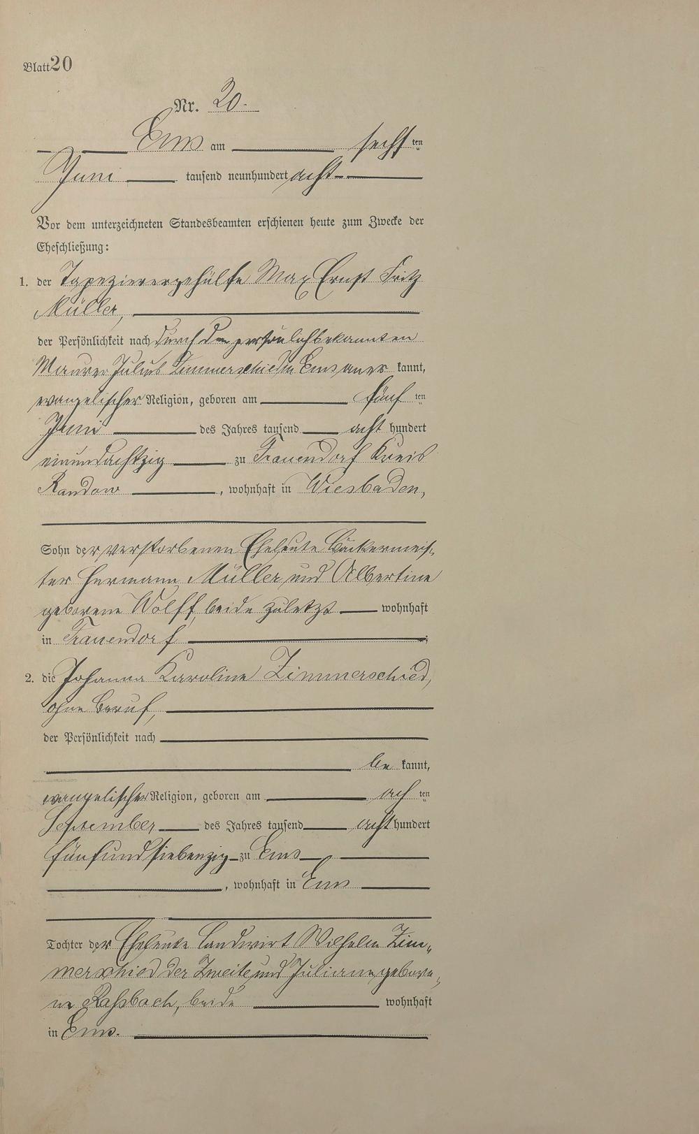 1384: Heiratsregister 1908