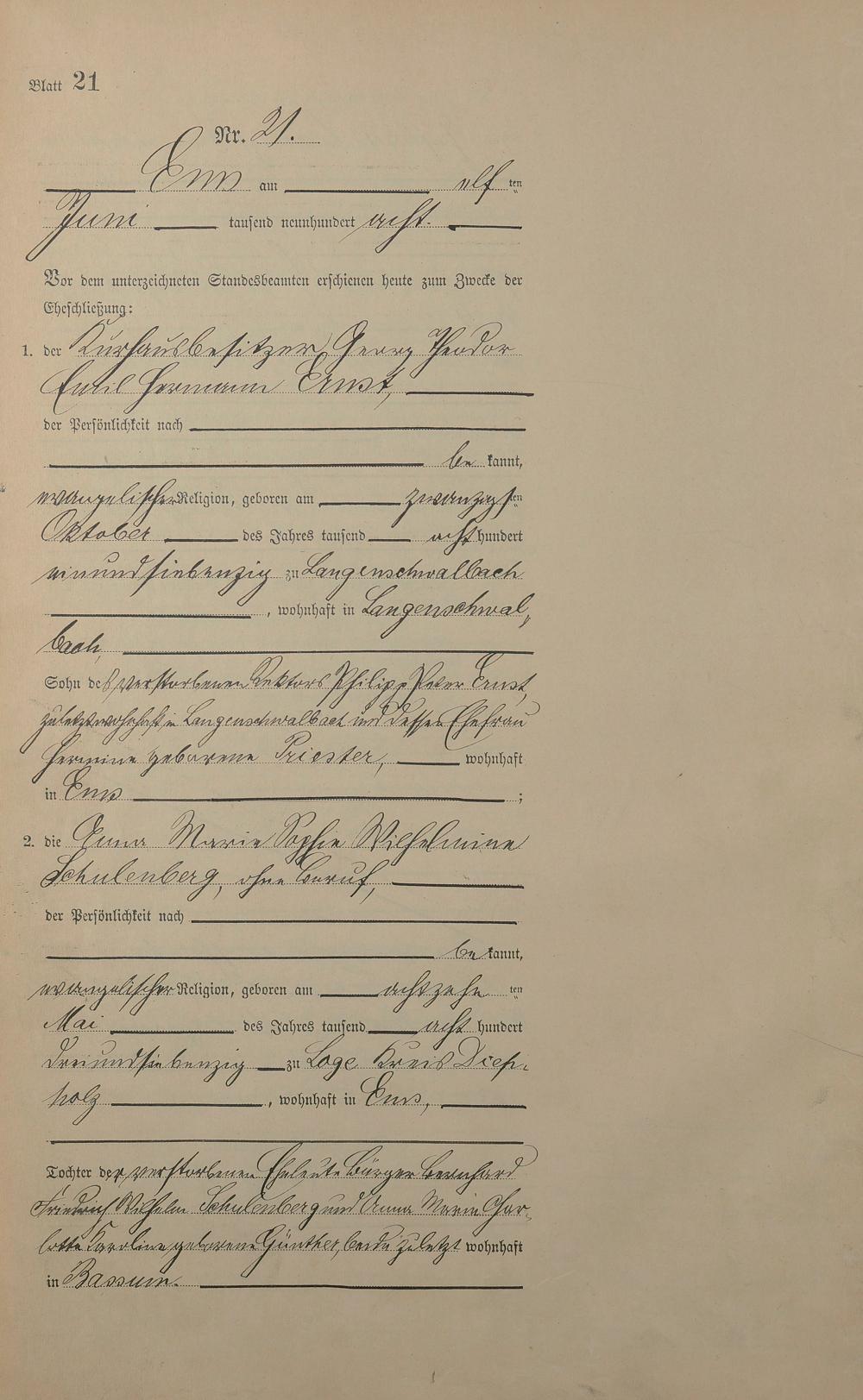 1384: Heiratsregister 1908