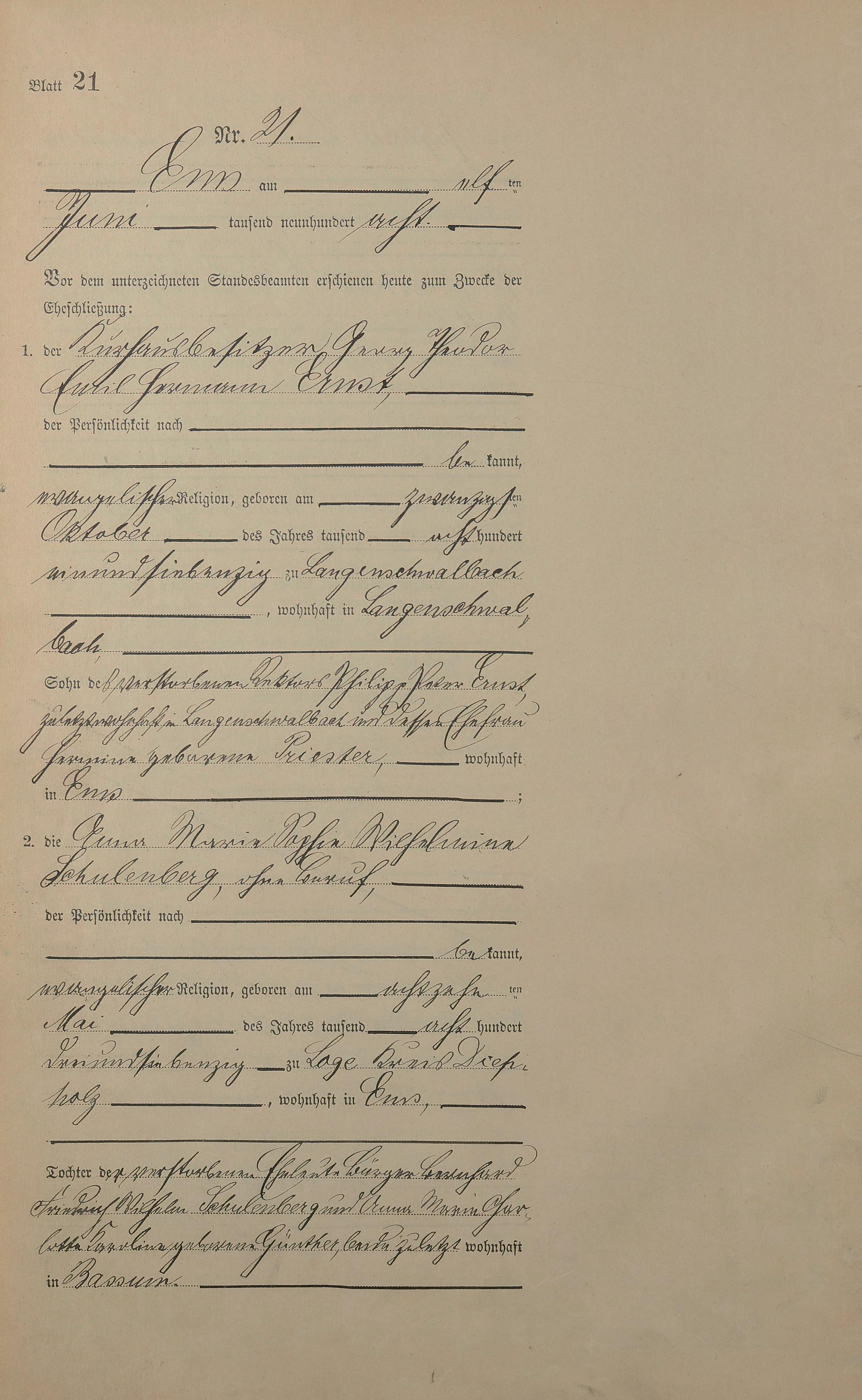 Heiratsregister 1908